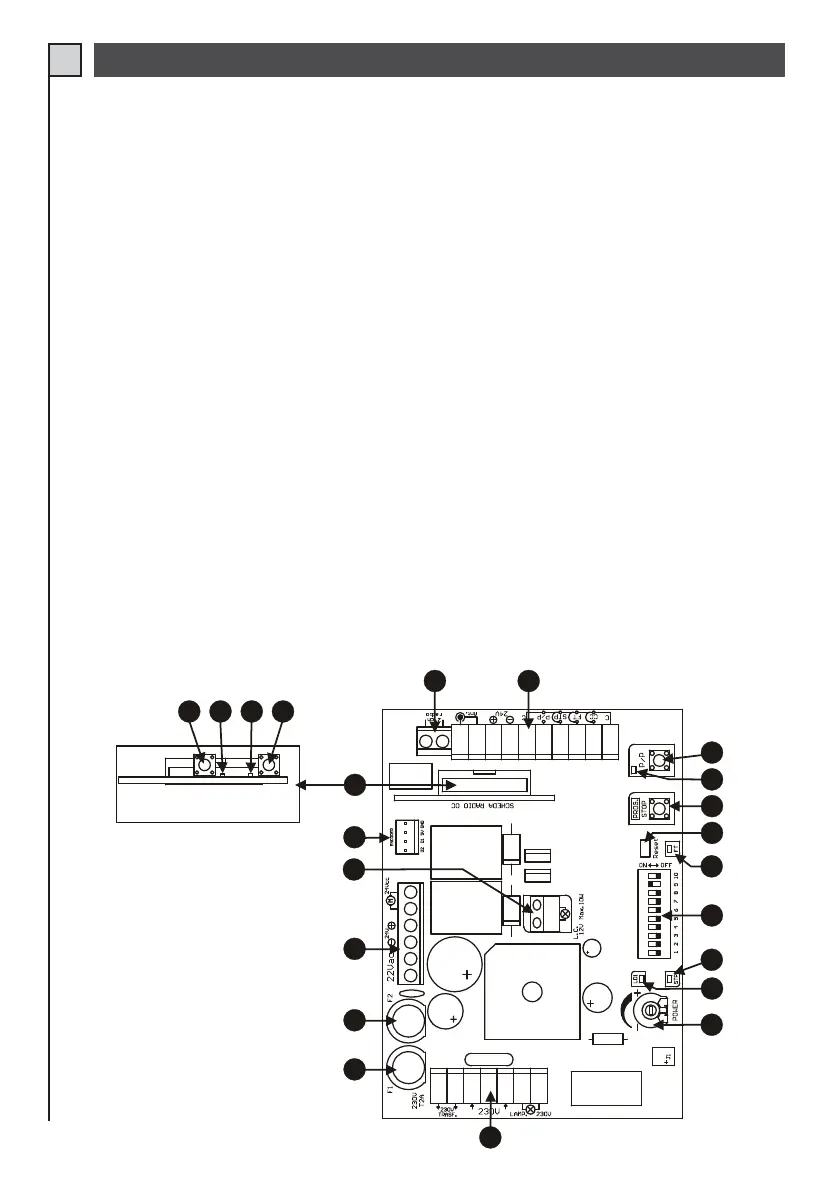 18) Led voor signalering status ingang FOTOCEL. Led aan = ingang gesloten