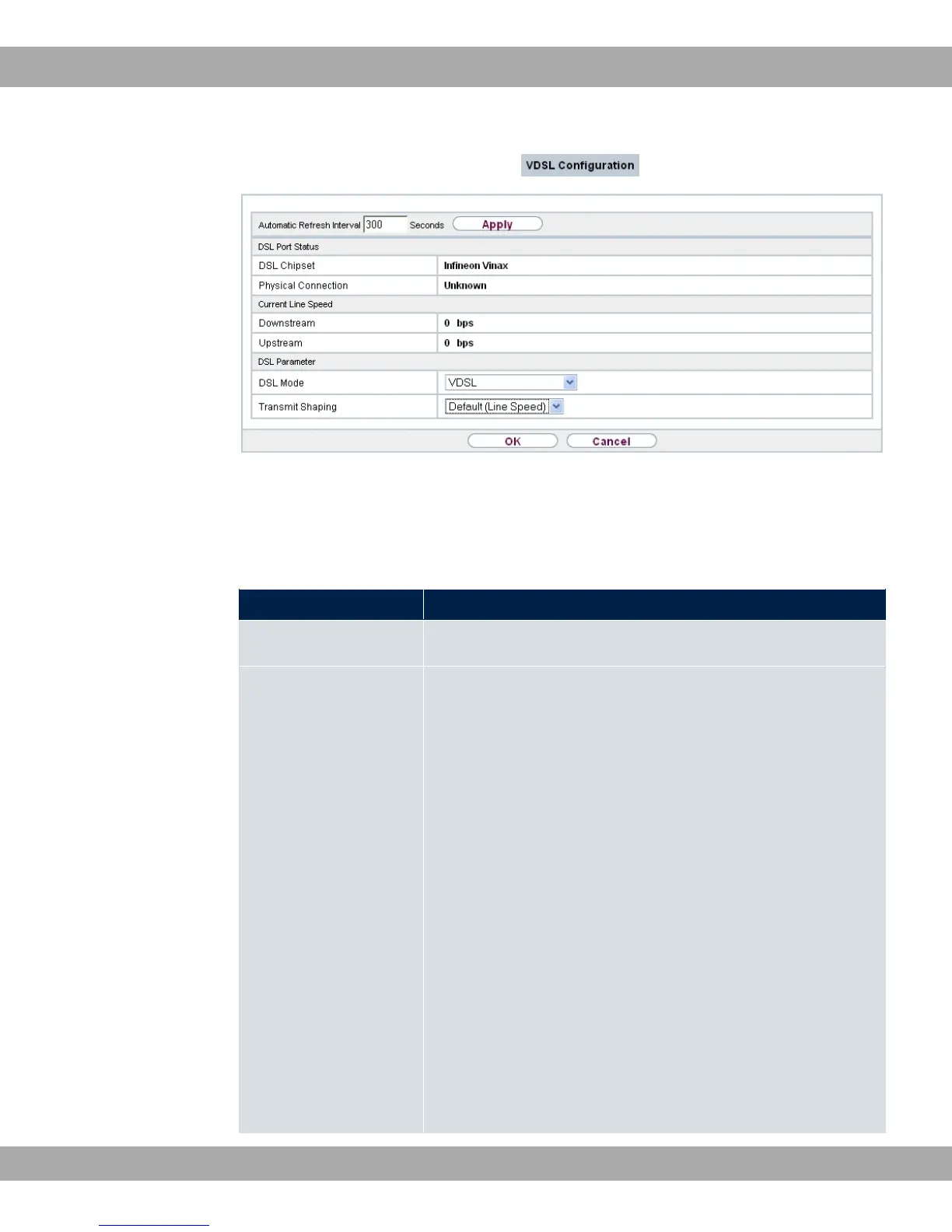 Fig. 55: VDSL modem: Physical Interfaces->DSL Modem->DSL Configuration