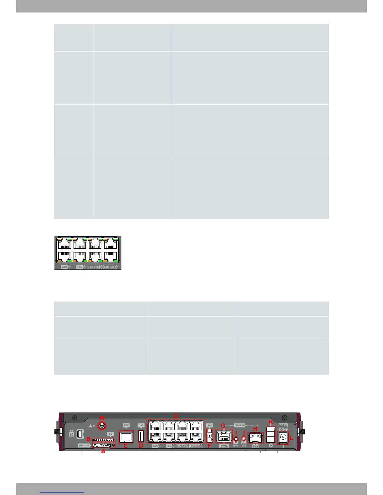 The following figure shows the rear panel. Here you will find the majority of the Teldat iM8 router connectors.