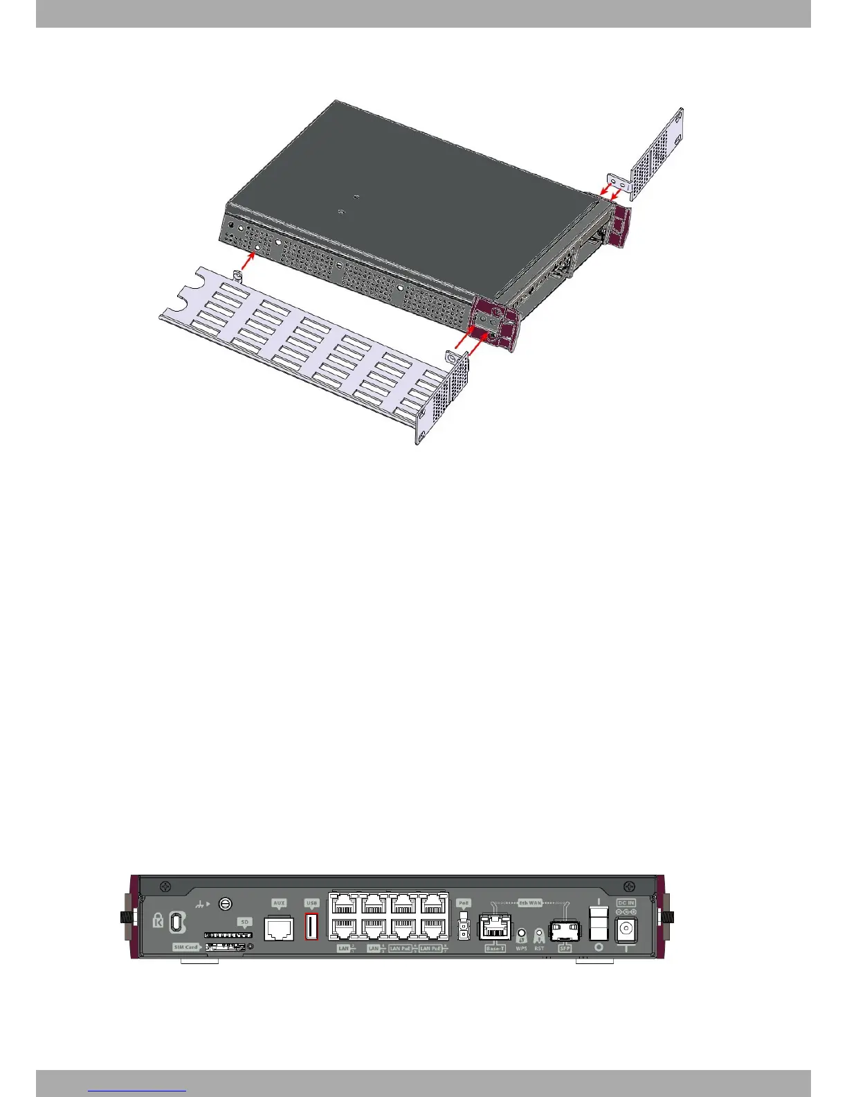 Teldat iM8 devices can be placed as standalones on a flat, stable surface. The adhesive rubber feet must be stuck