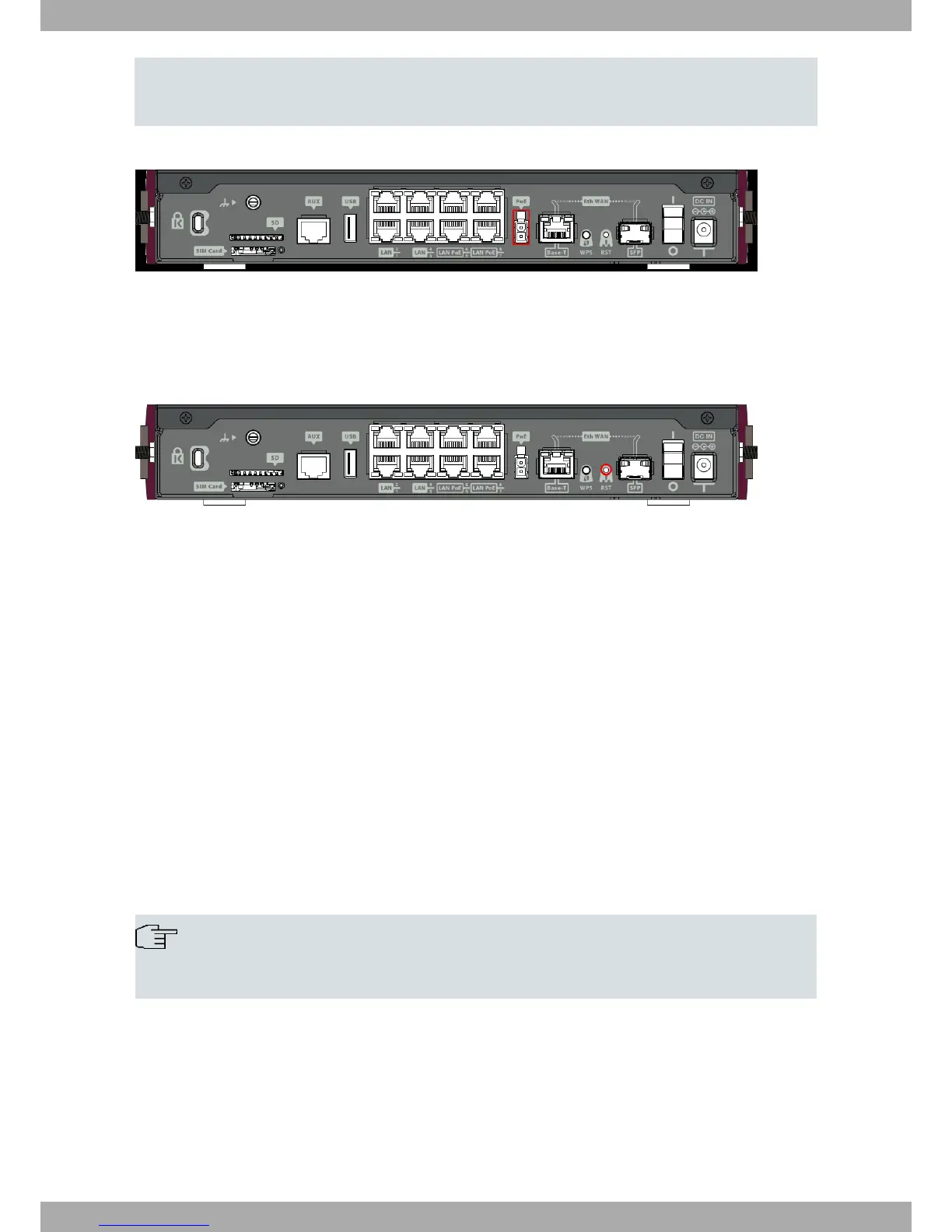 • With the device switched off, press and hold the RST button down while you turn on the router using the ON/OFF