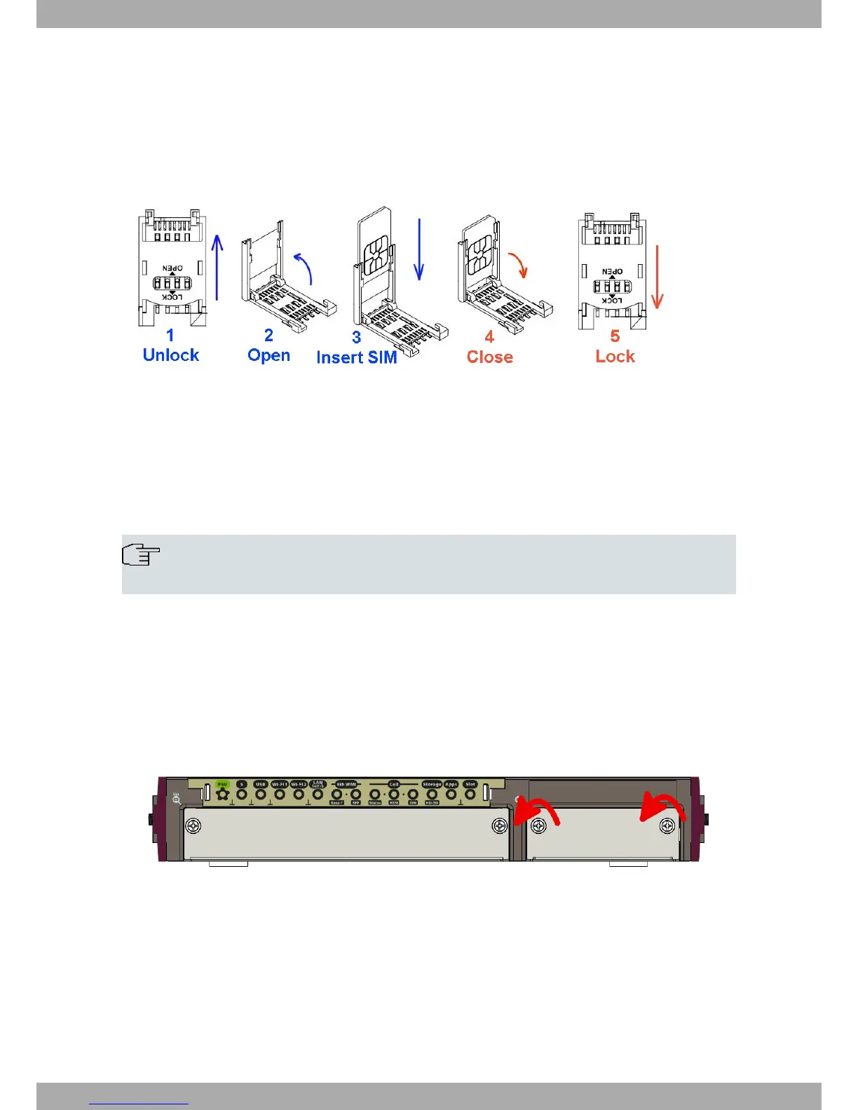 Fig. 31: Inserting the SIM in the internal tray