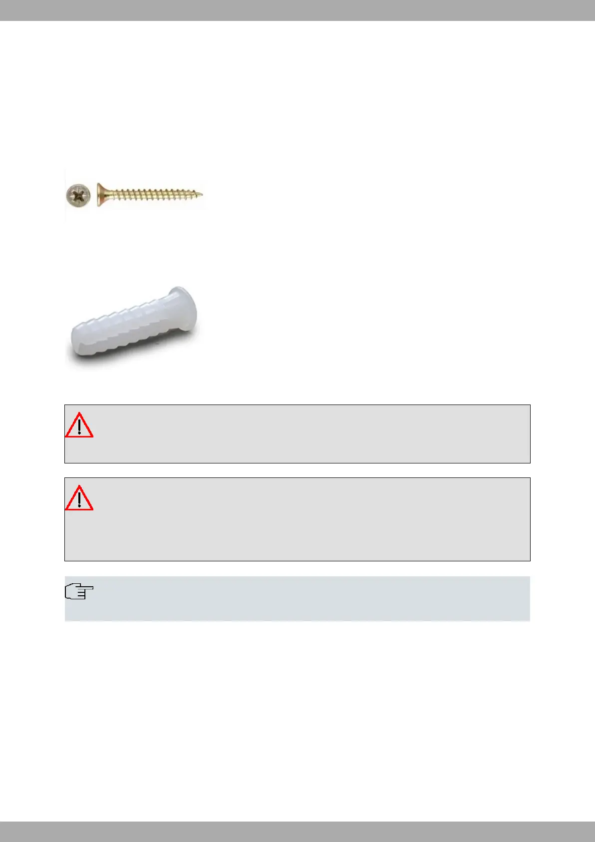 We recommend the following accessories for wall mounting, valid for solid and Gypsum board (plaster) walls: