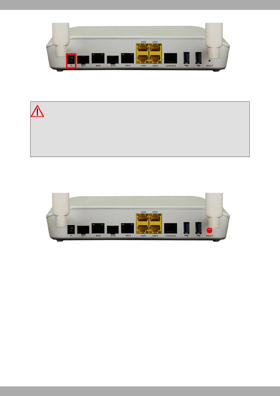 • For the device to boot with the default configuration, release the Reset button while the WLAN-2 LED is blinking