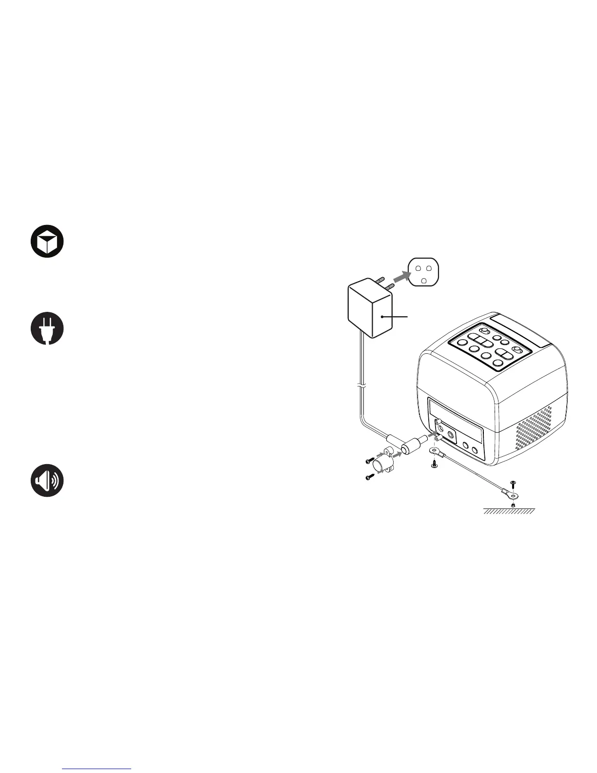 TA-7850 Alarm Clock, AC power adaptor, plastic wall plug.