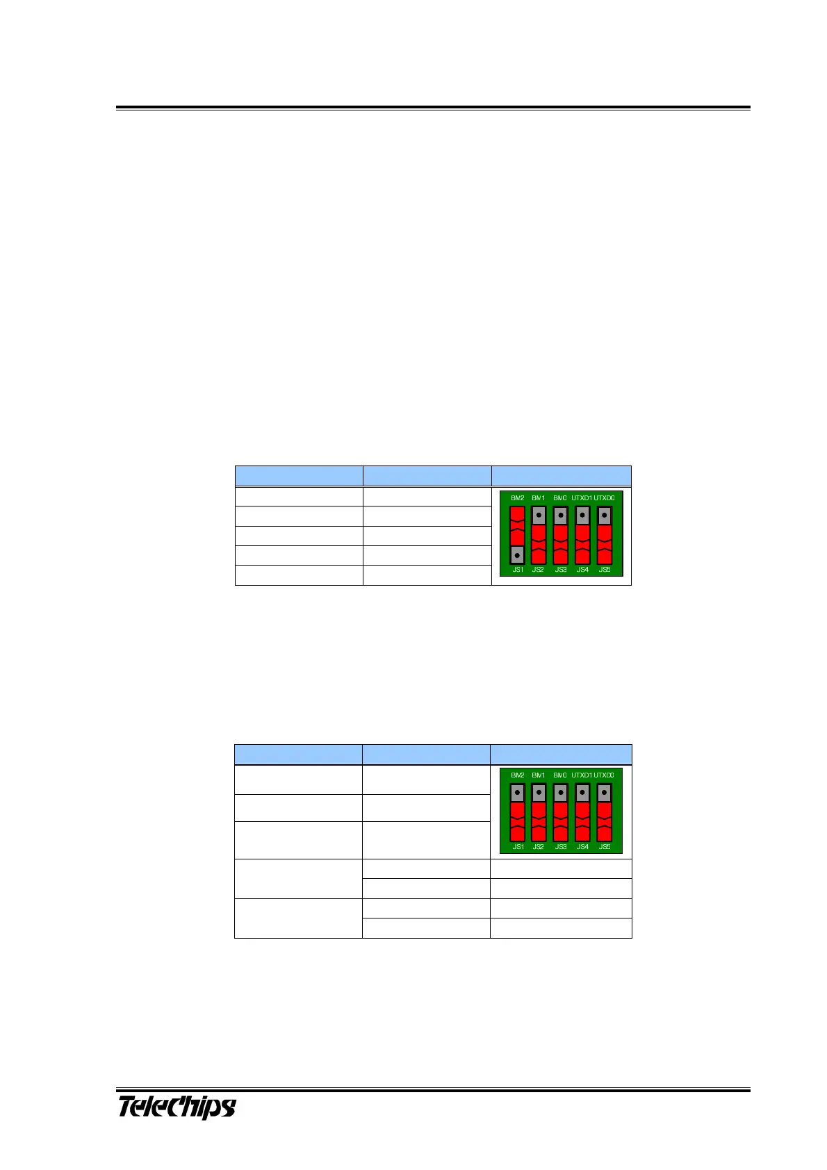 아래 표는 TCC8900 데모 보드를 사용하기 위한 각각의 Jumper Setting Mode이다.