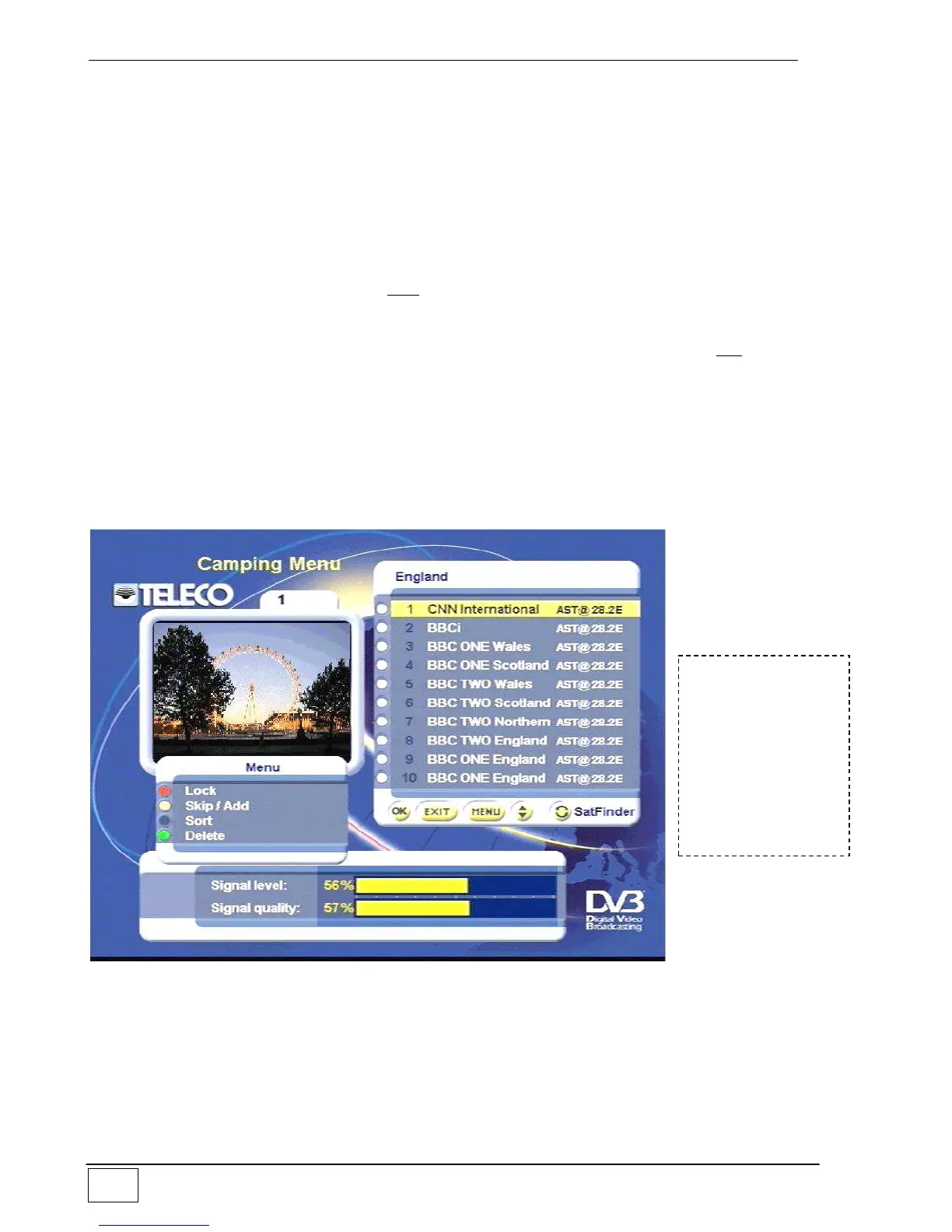 “NAME” of the satellite the list will only consist of the services which are broadcast by