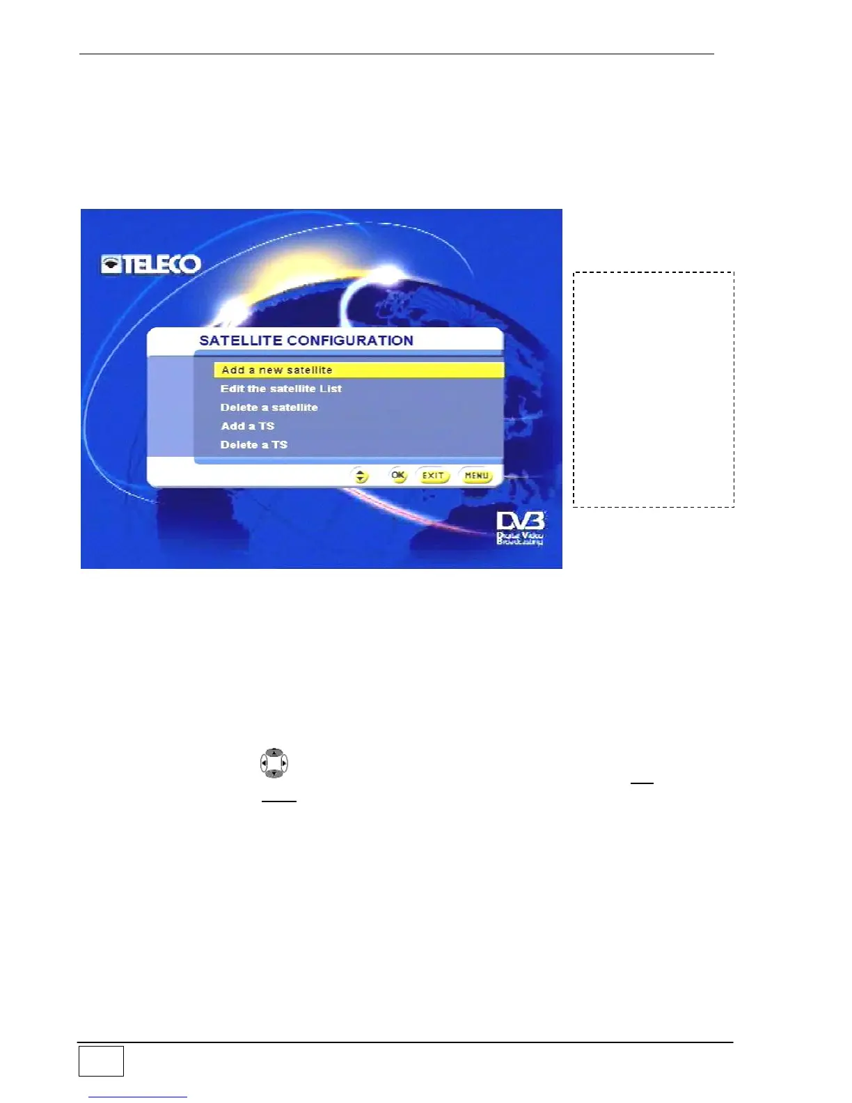This sub-menu provides information on the satellites you wish to receive. The maximum