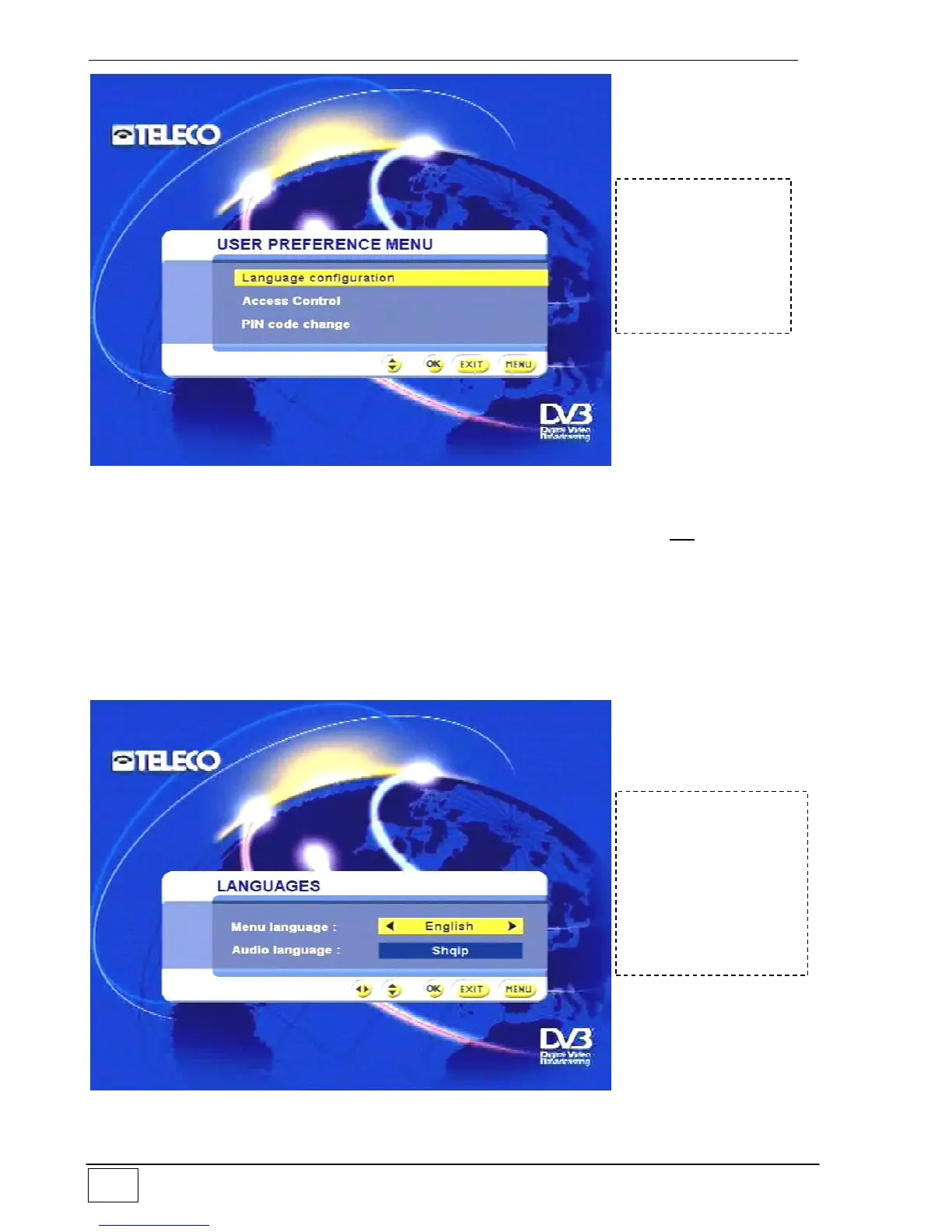 Flat Sat Light receiver and the default audio language. If the received service is available