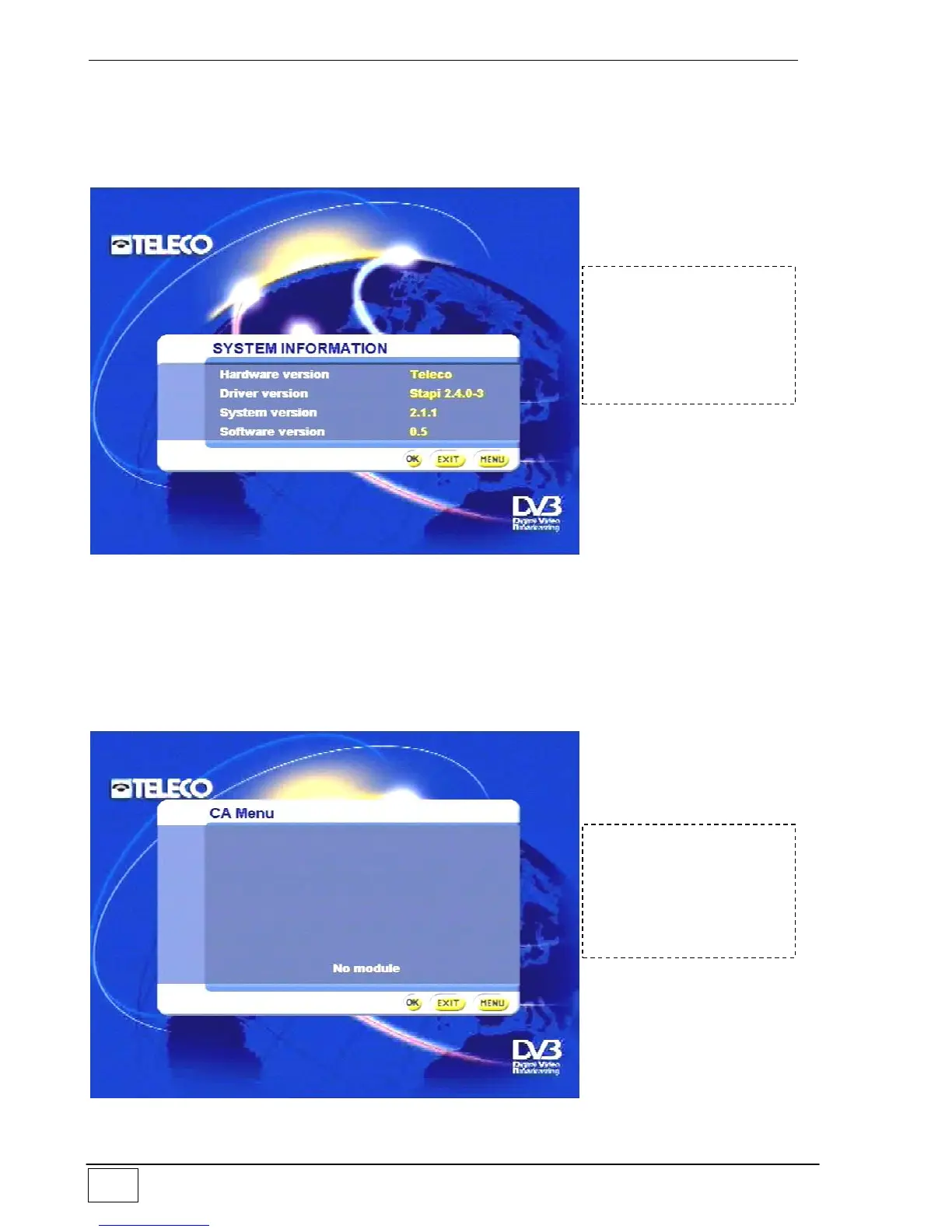 This menu gives technical data on the software installed on your receiver. This data is