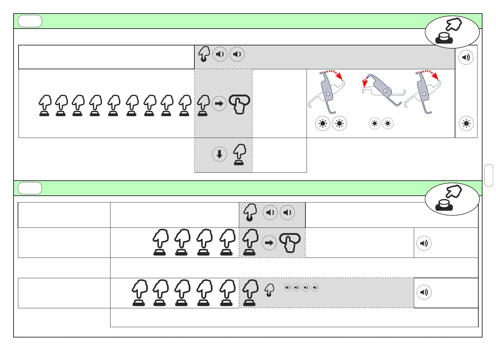 Appuyer 10 fois de suite sur le bouton P1 et le maintenir appuyé
