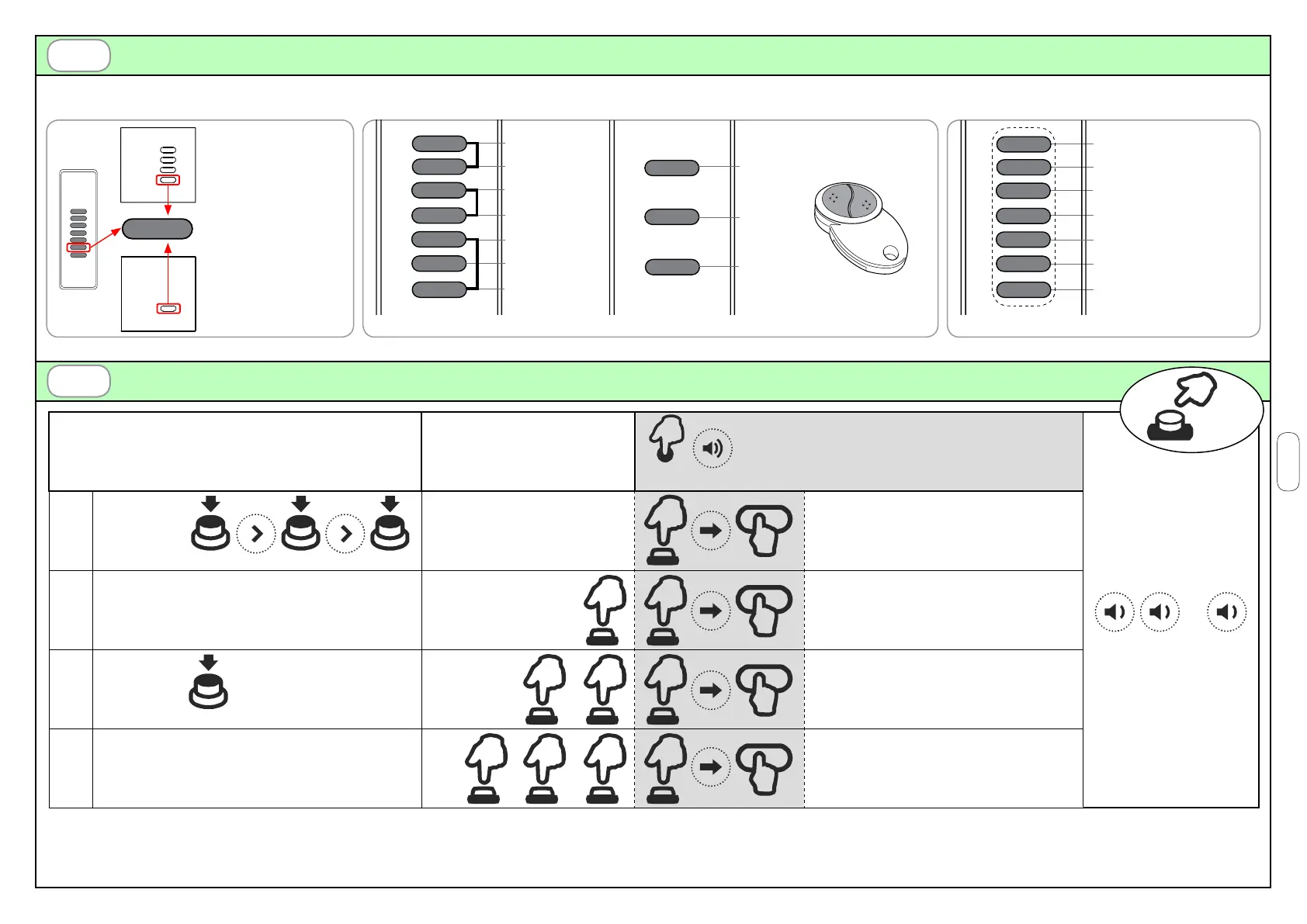 Pulse el botón del transmisor correspondiente al código a memorizar. La memorización se indica mediante un sonido intermitente del zumbador.