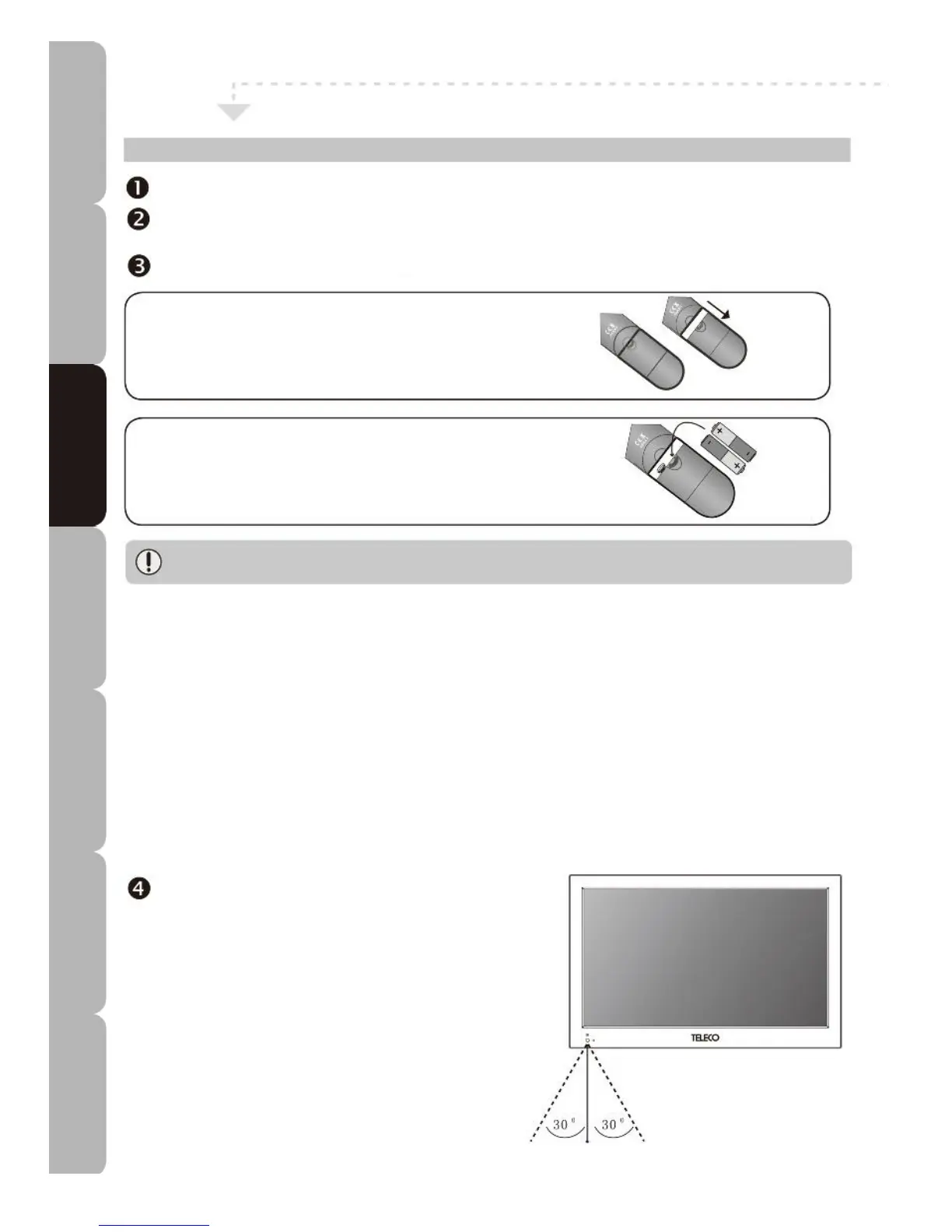 NOTE: Remove the batteries from the remote control handset when it is not to be used for a long period to