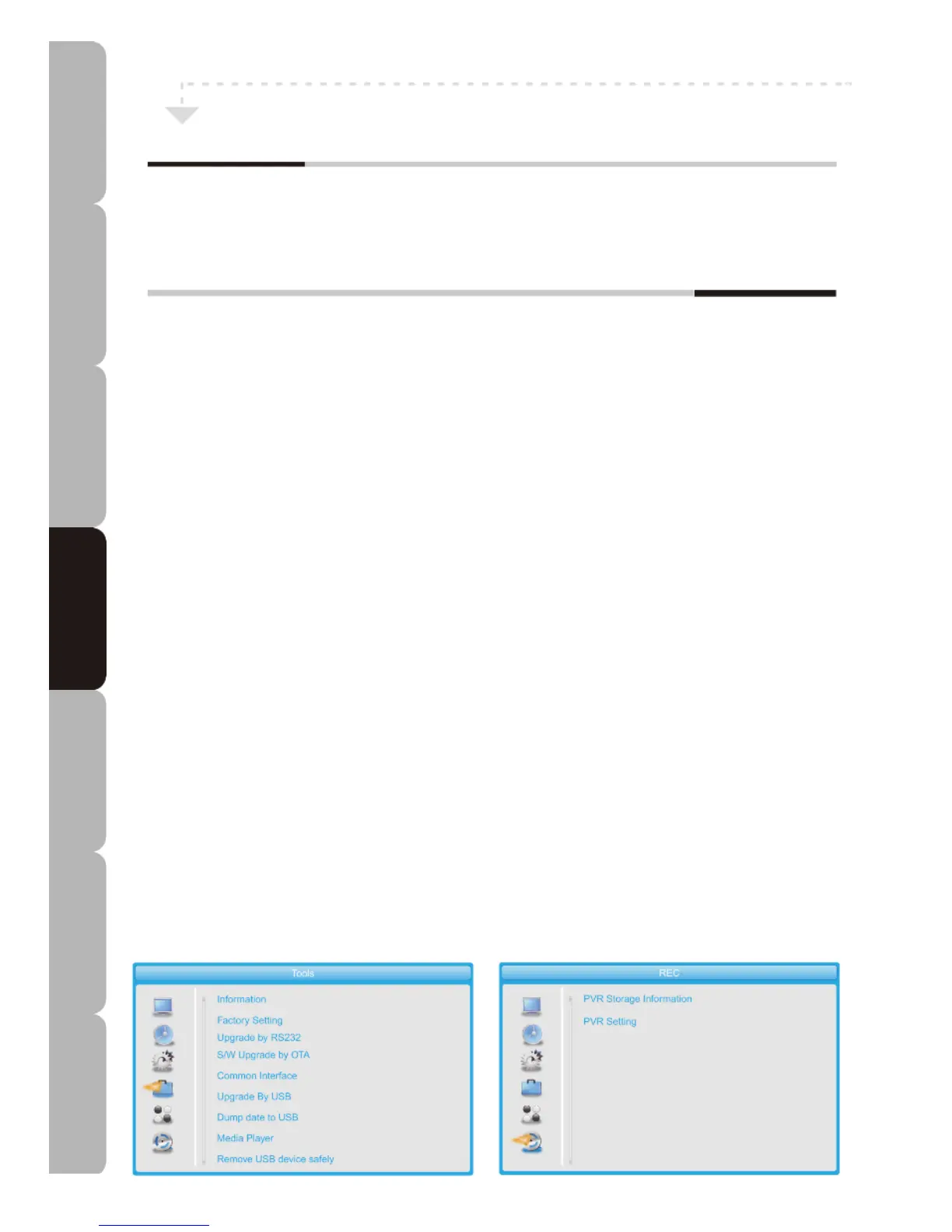Rec MENU: Allows you to set up a variety of features: PVR Storage Information and PVR Setting.