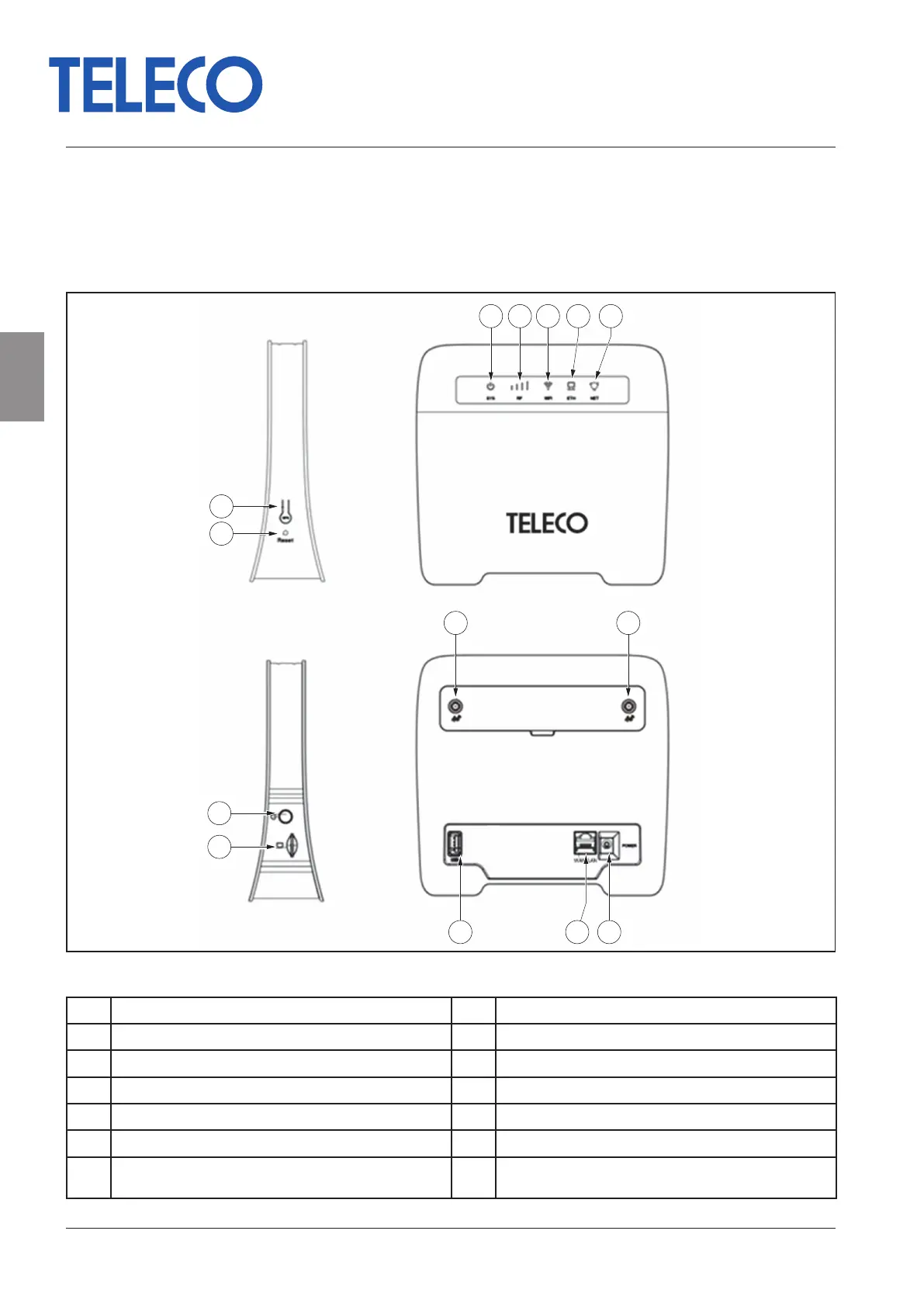 7 Reset 14 SMA connector for external antenna (external antenna not