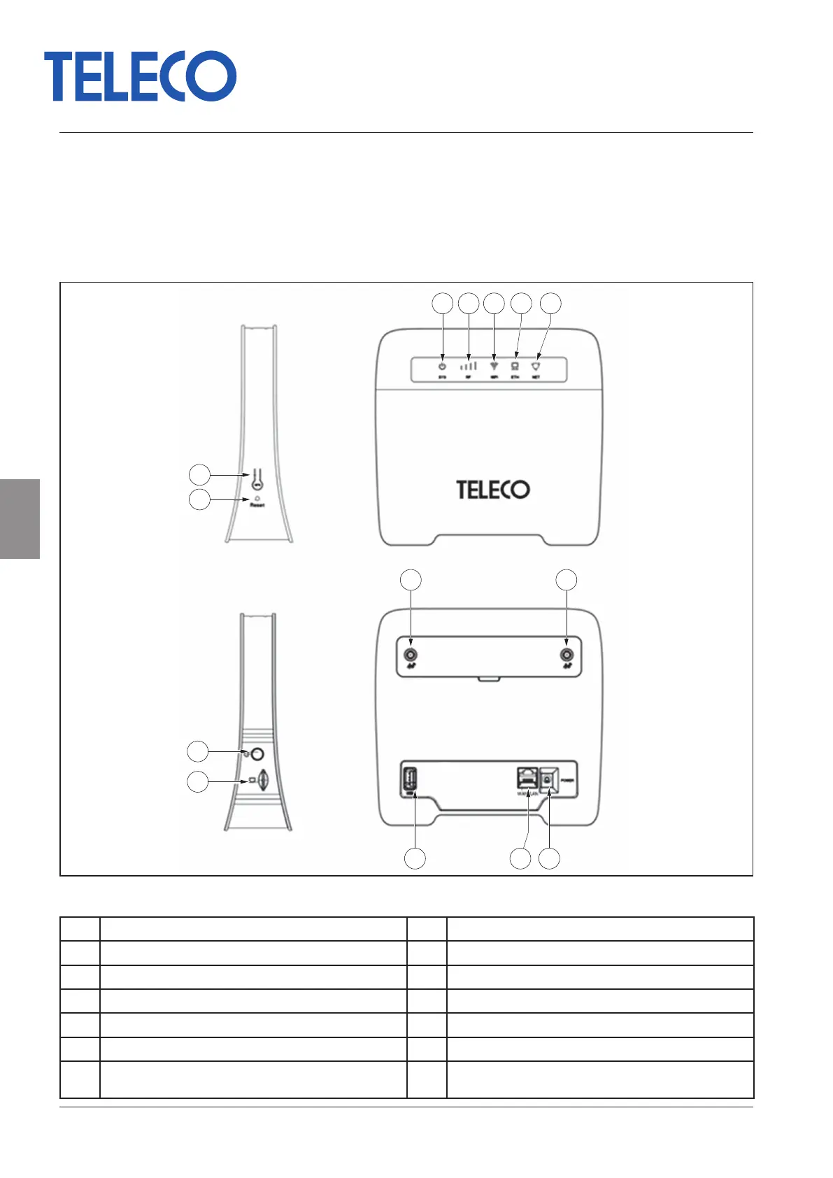 7 Reset 14 SMA-Anschluss für externe Antenne (externe Antenne nicht
