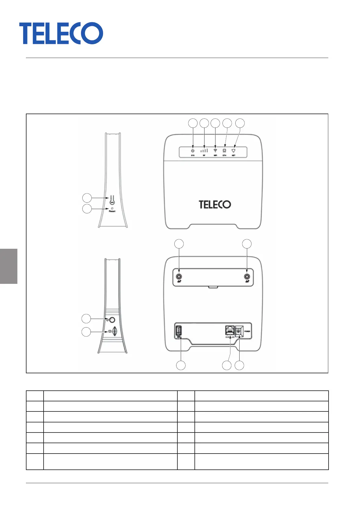 5 SIM CARD slot 12 LED LAN kabel aanwezig