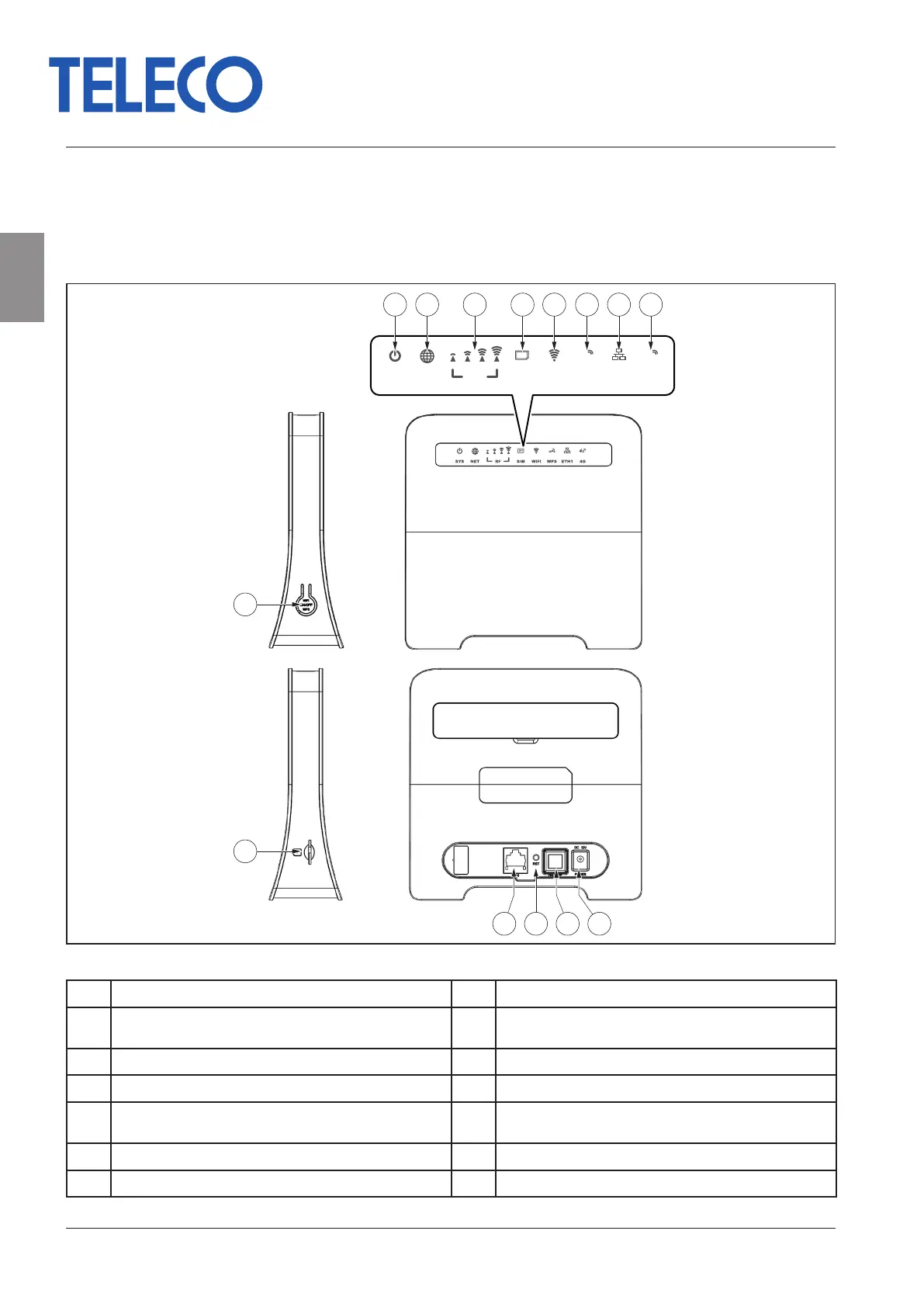 1 LED Interruttore ON/OFF 8 LED Rete 4G attiva