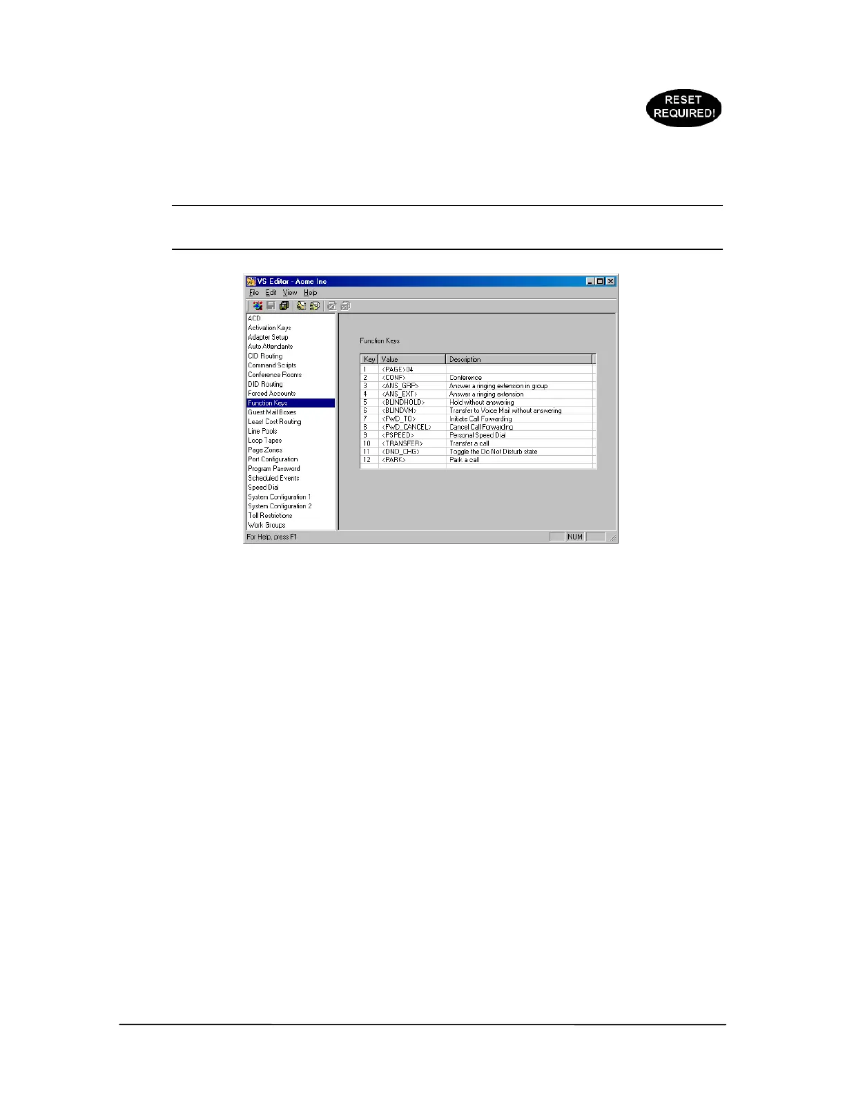 • The Function Keys pane appears with a list box that shows a list of 12 Function Keys that