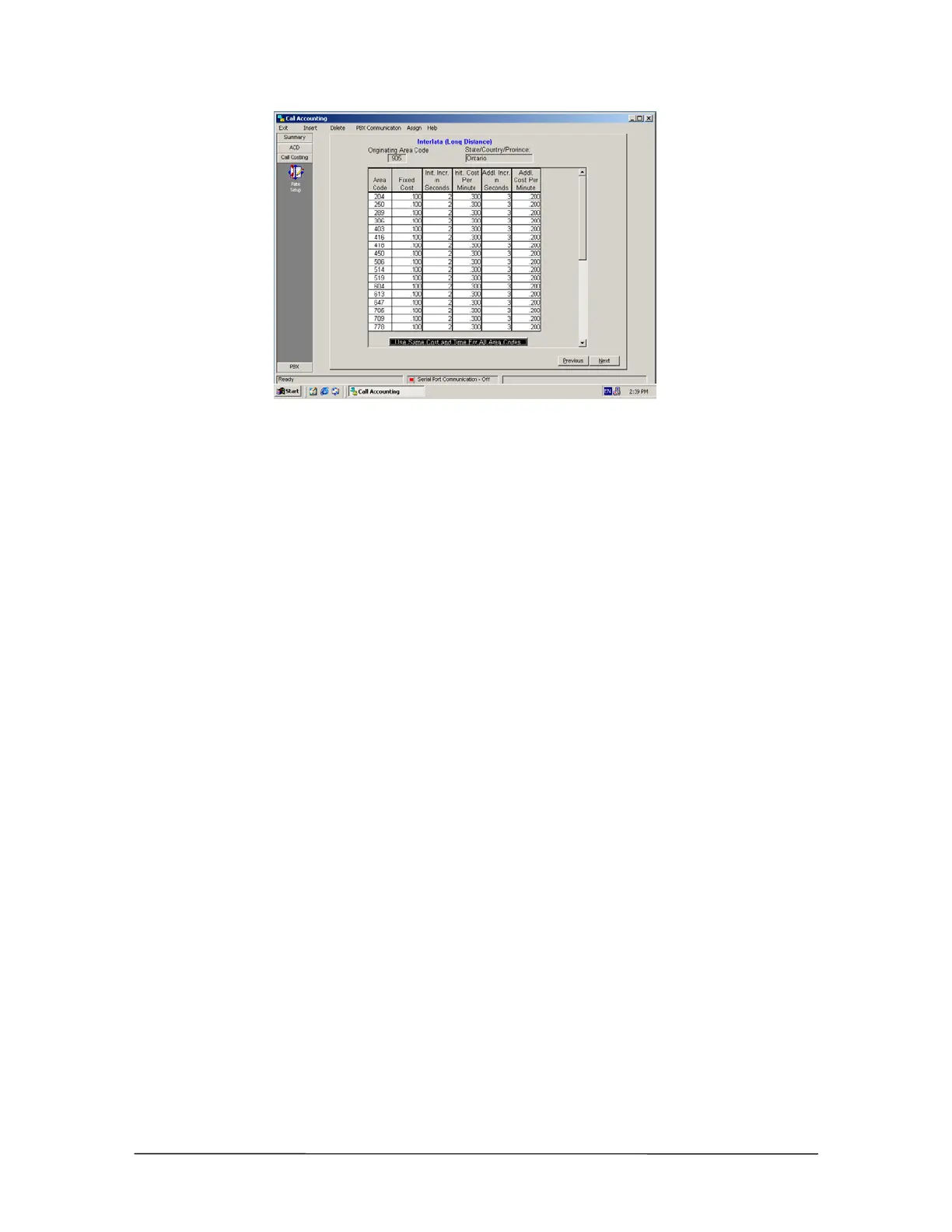 The Call Costing screen allows fixed and incremental rates (in seconds and minutes) to be set for