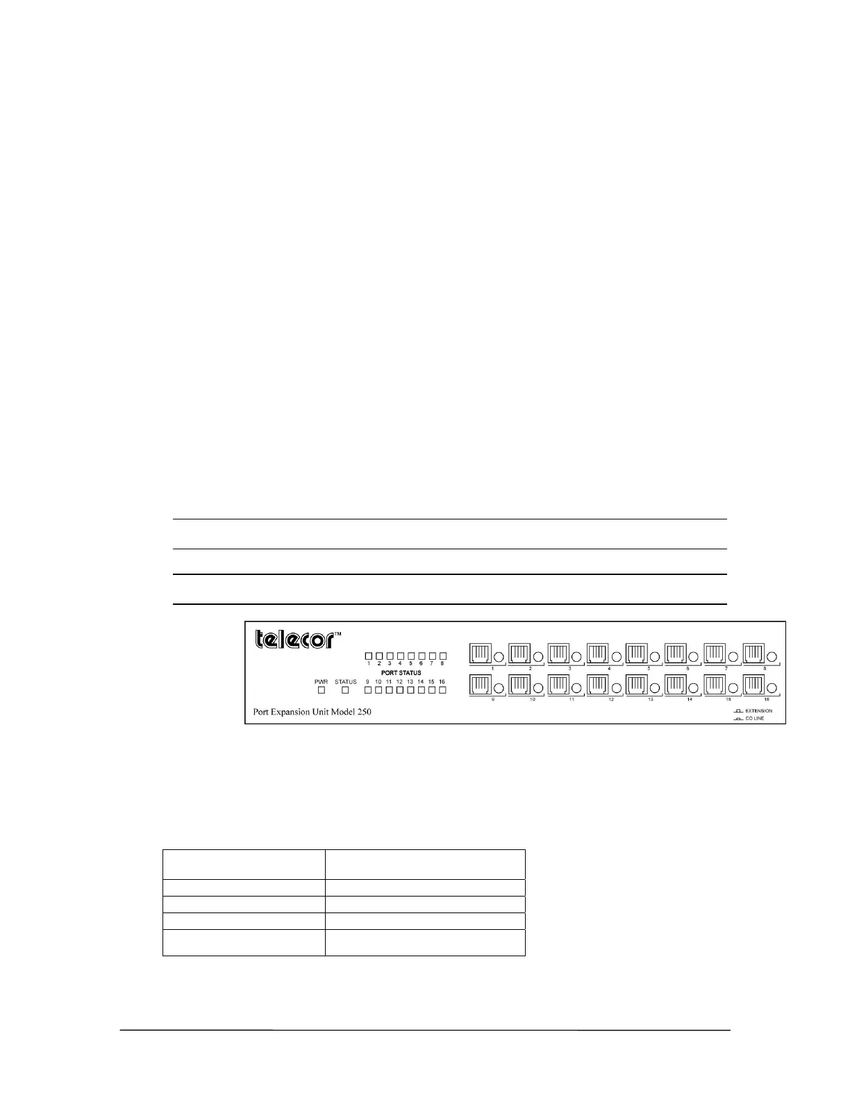 The Model 250 PEU has 16 ports, each of which can be configured as a CO or Station port. It is