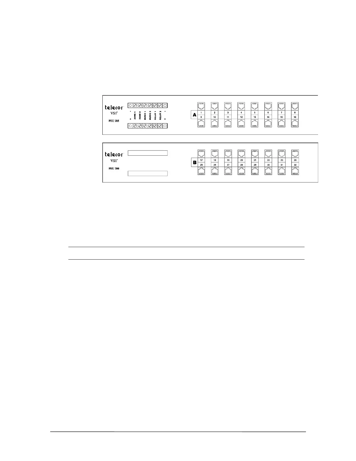 1. Attach the correct PEU labels between the RJ-11 jacks on the front of each PEU. Label the first