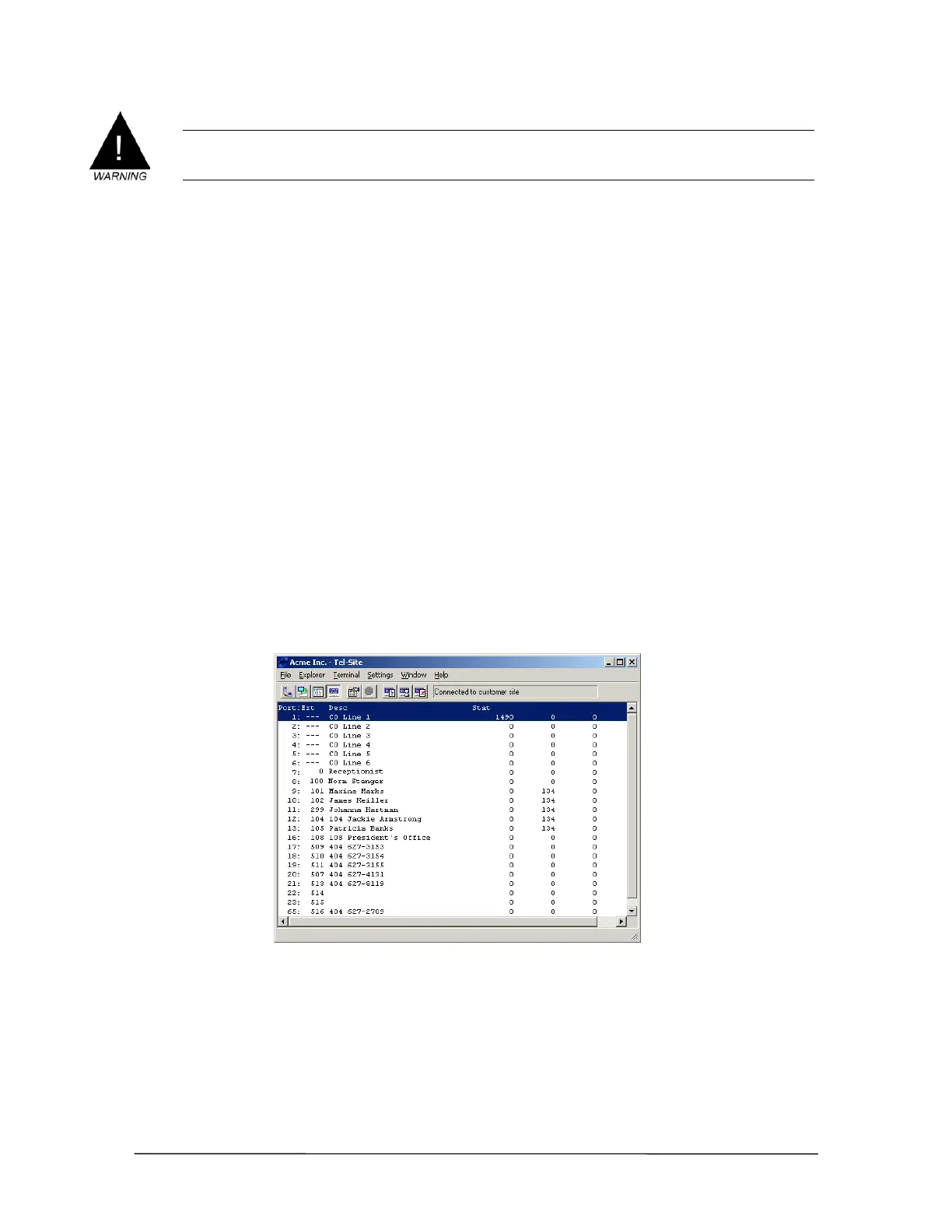 there is activity in the second column, the Caller ID Module is not functioning properly.