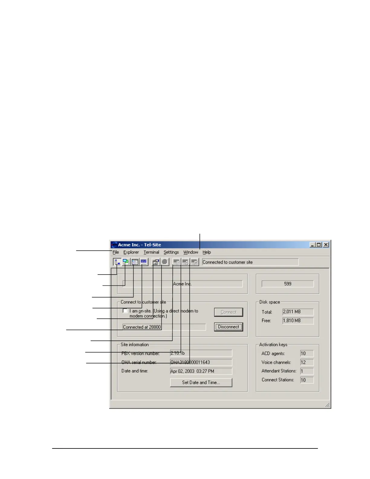 customer site profile (see “Setting up a New Site,” page 56), the Connection window is where you
