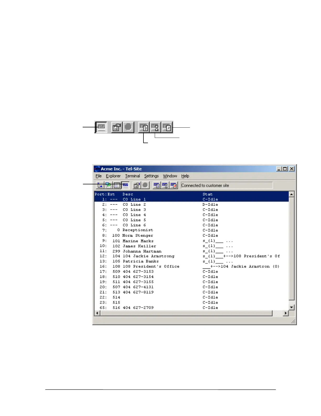 provides snapshots of the real-time dynamics of a remote phone system. With the Terminal window