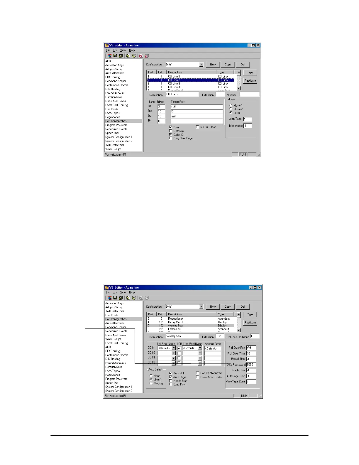 1. In the VS1 Editor Tree Control display, click Port Configurations.