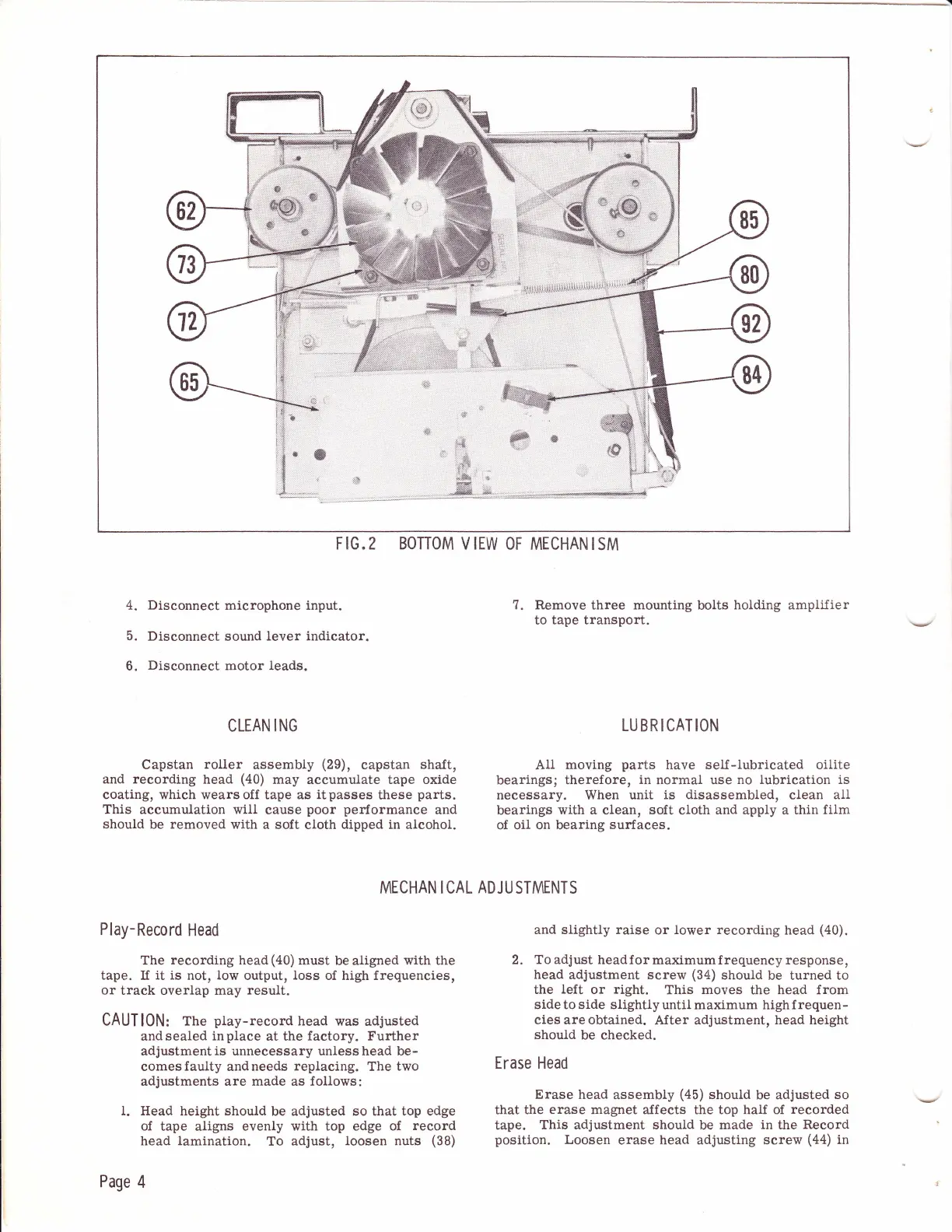 Telectro 1975 - Cleaning and Lubrication; Mechanical Adjustments; Play-Record Head Adjustment; Erase Head Adjustment