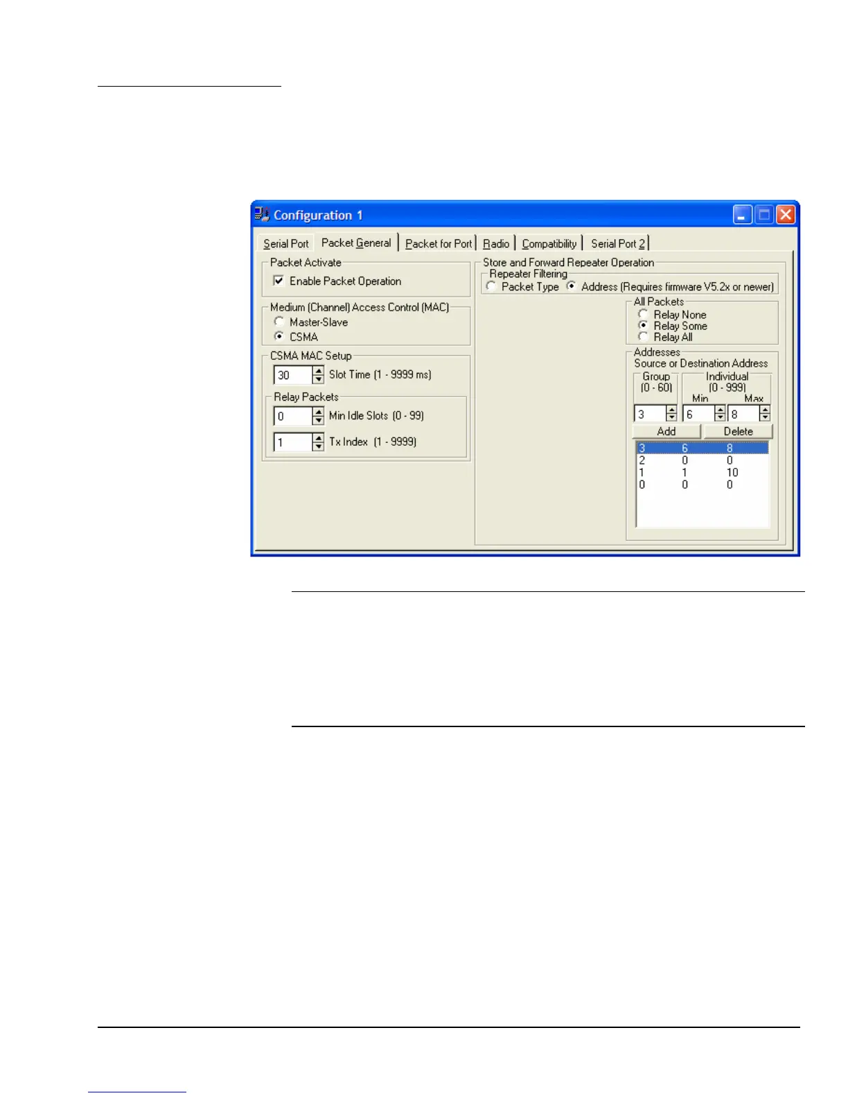 These configuration options are set using the Packet General tab of the Modem