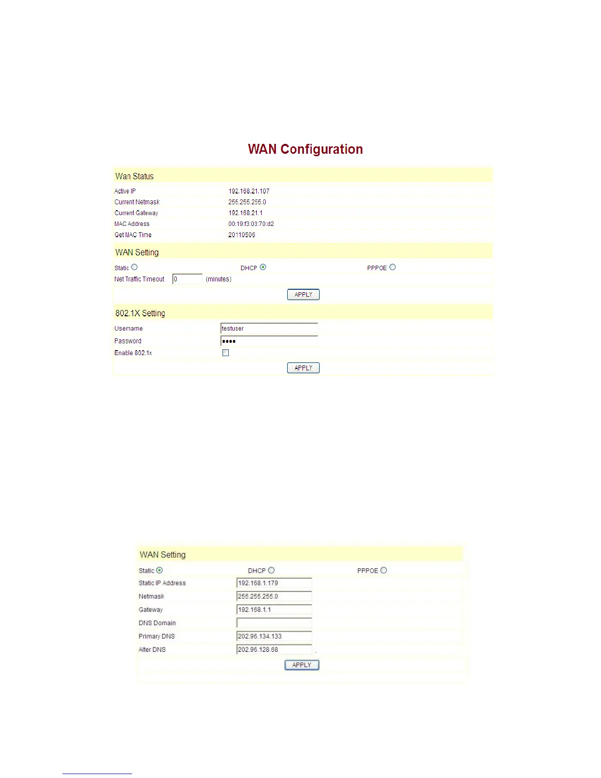 802.1x Setting: when you enable the 802.1x, after the authentication