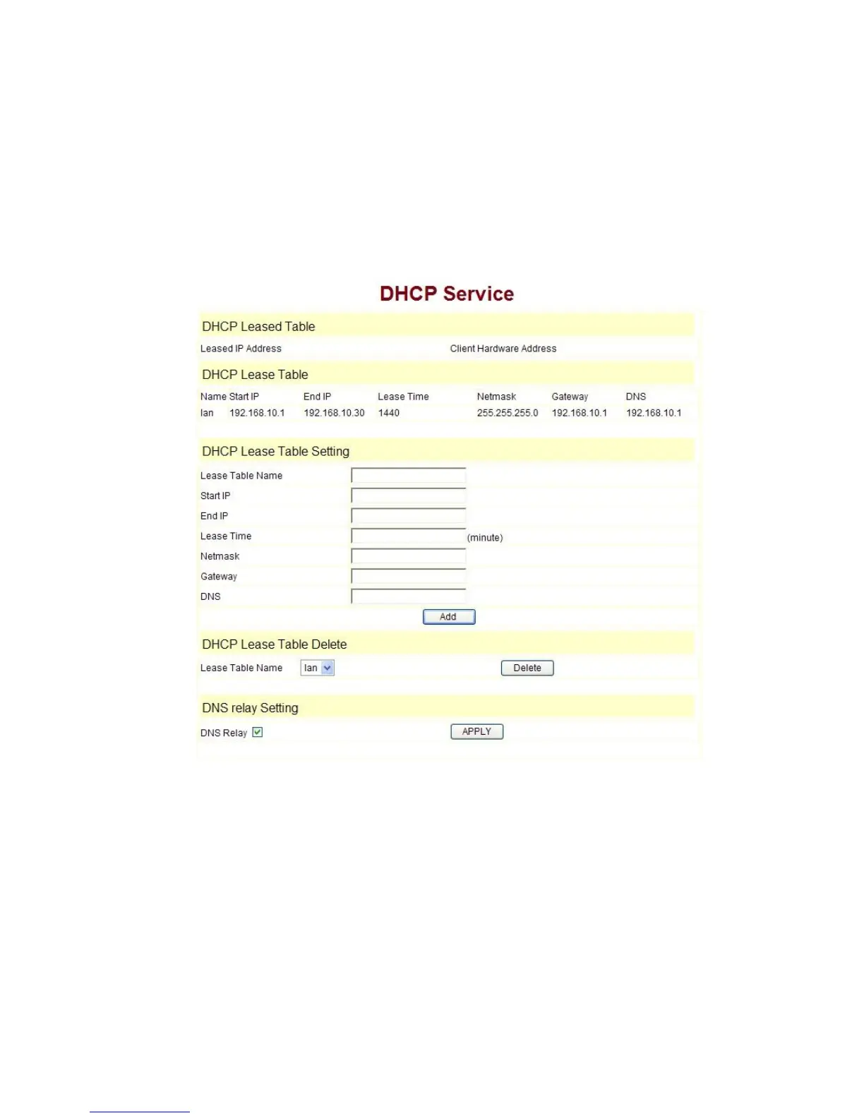 DHCP Lease Table:display the IP-MAC corresponding table that the server