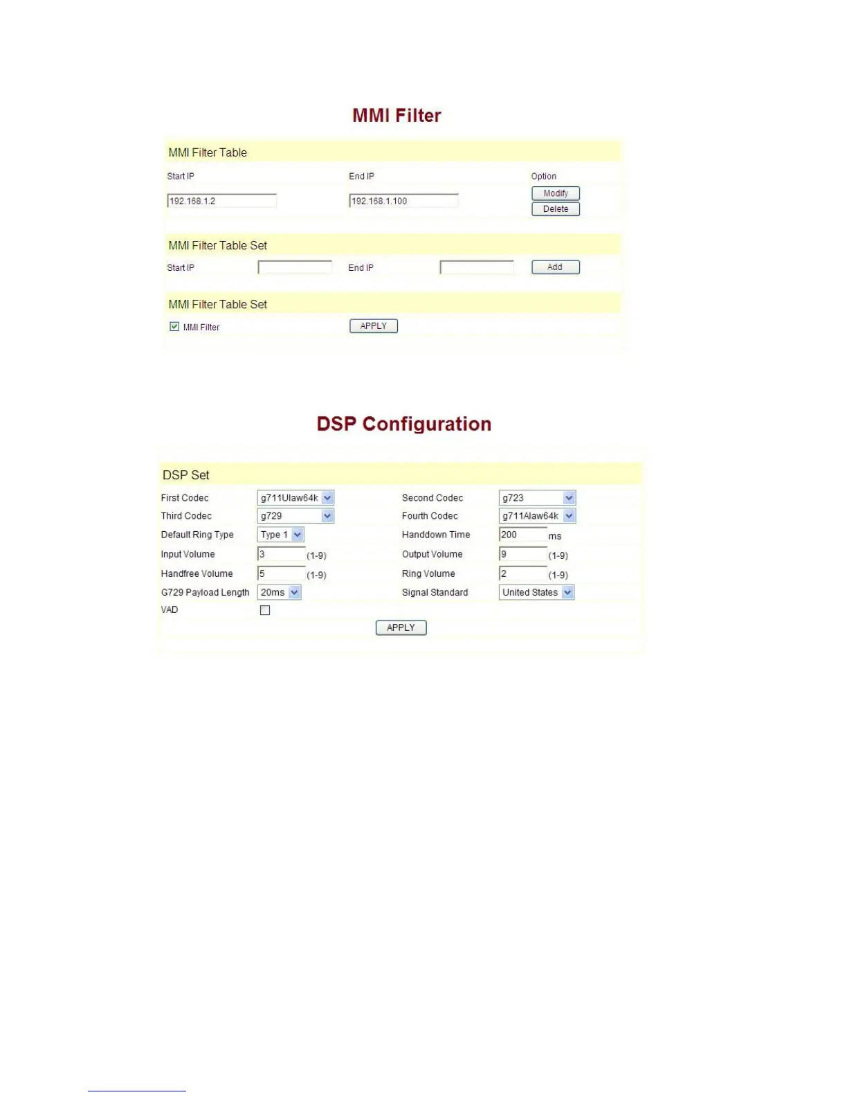 CODEC: select the prefer CODEC; support ulaw, alaw, G729 and G7231 5.3/6.3