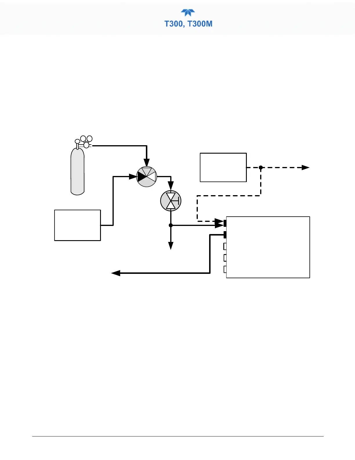 Figure 2-15. T300/T300M Pneumatic Connections – Basic Configuration Using Bottled Span Gas