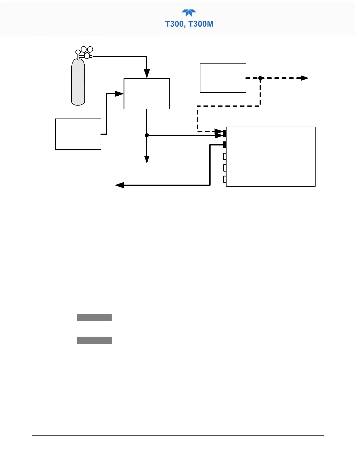 Figure 2-16. T300/T300M Pneumatic Connections – Basic Configuration Using Gas Dilution Calibrator