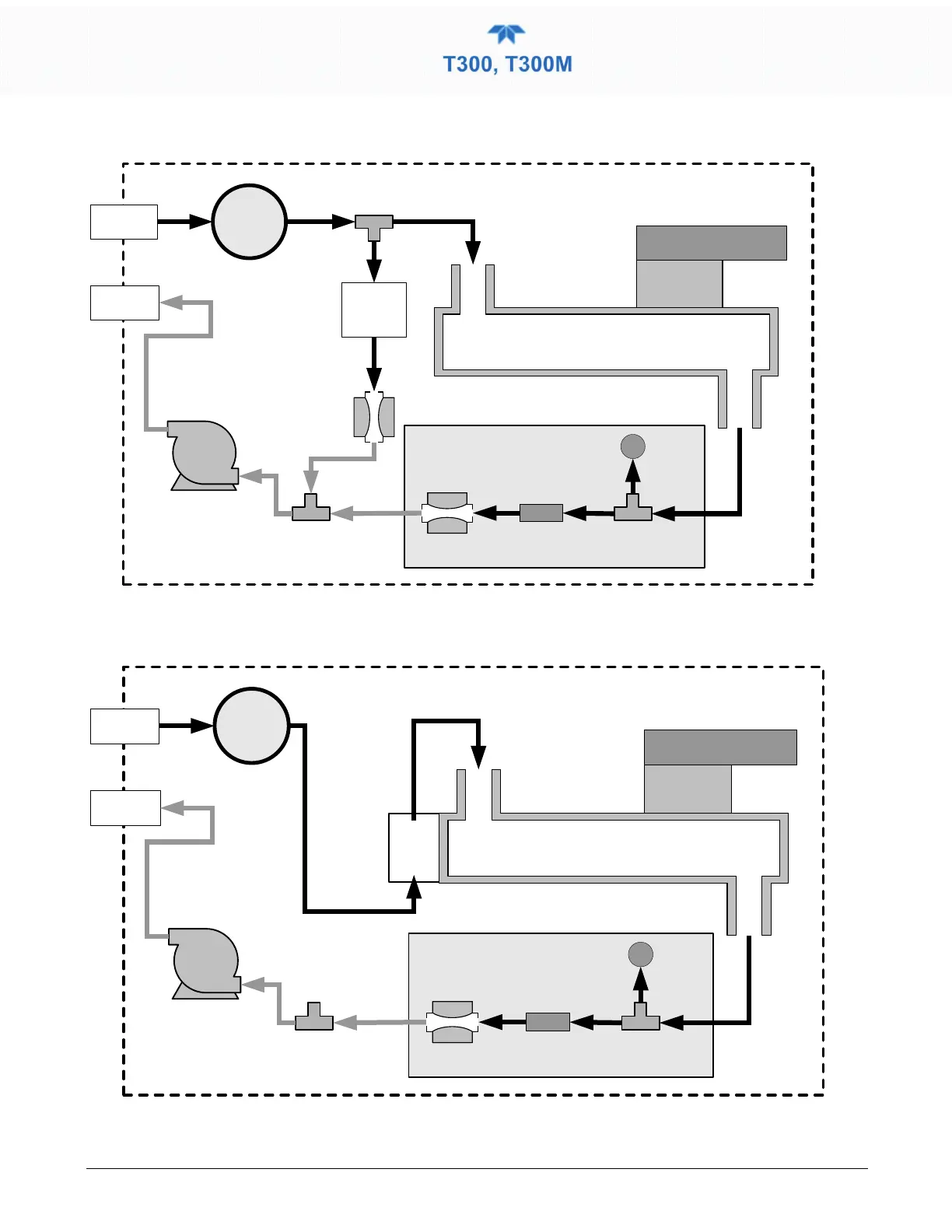 TELEDYNE API T300M - Pneumatic Flow: Second Sensor Options; Figure 2-26. T300;T300 M Internal Pneumatics with O; Figure 2-27. T300;T300 M Internal Pneumatics with CO