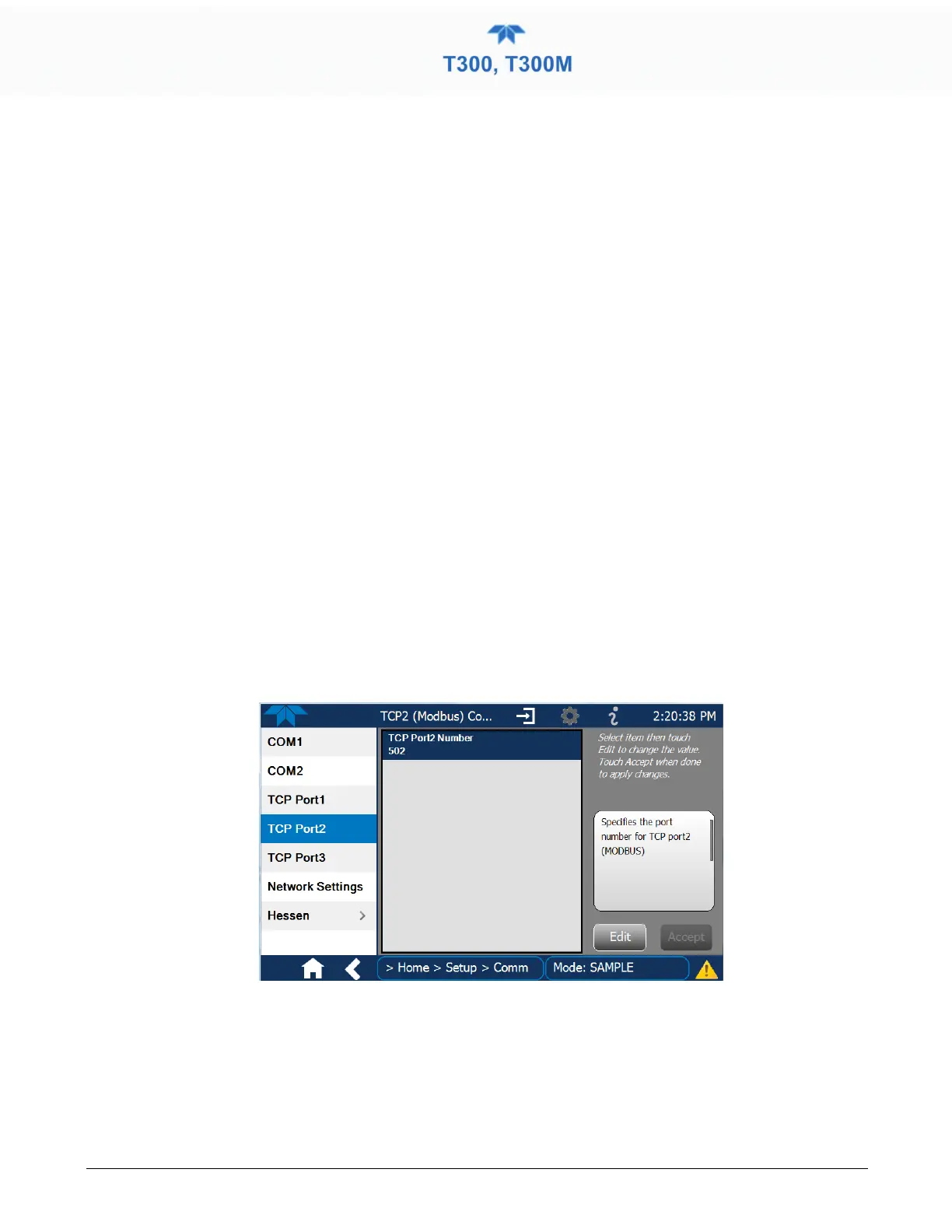 the instrument’s TCP Port 2. (Setup>Comm> TCP Port2, Figure 3-1).