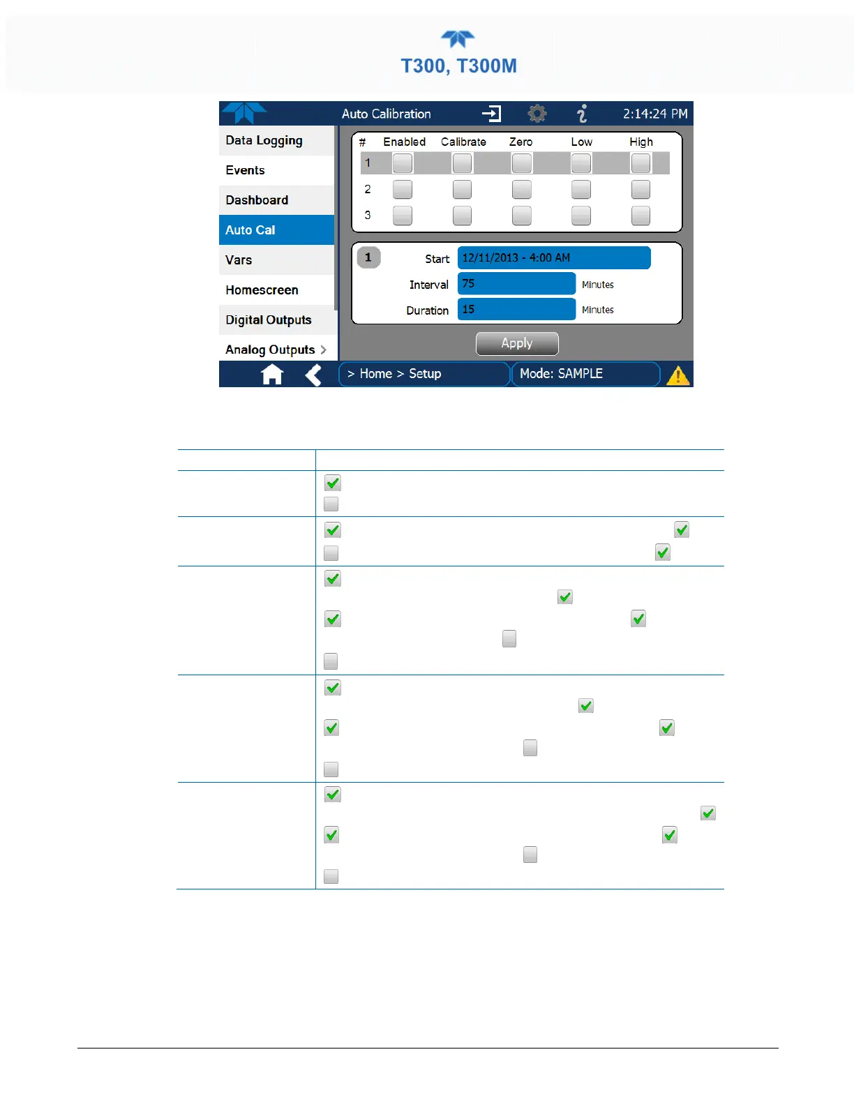 allows a calibration check when the Enabled box is also .