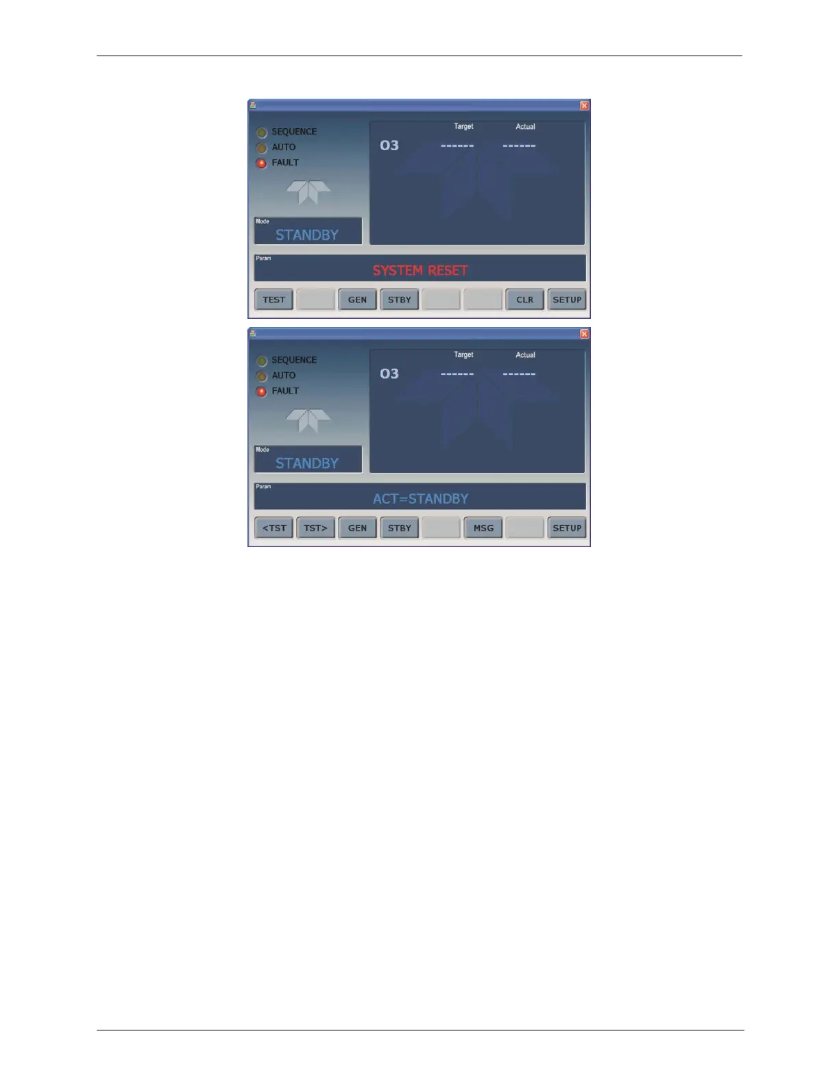 Top: the CLR button is available to clear the warning message displayed in the Param field.