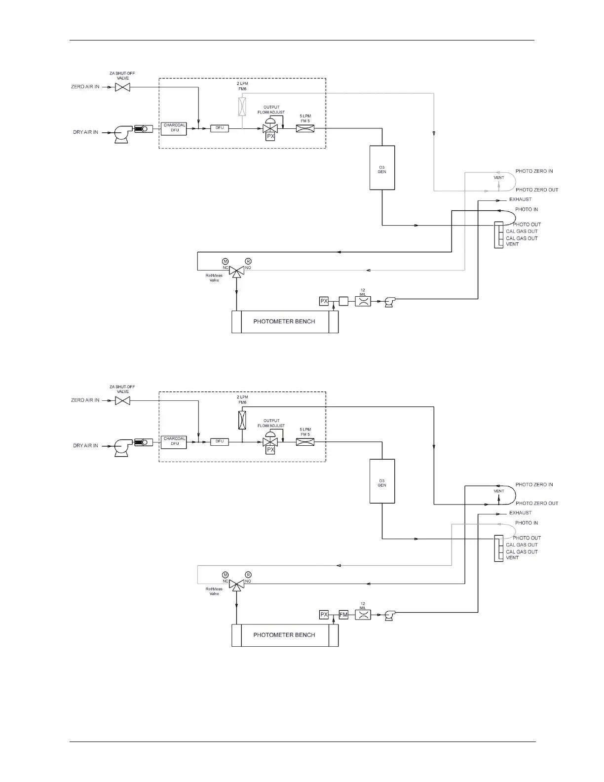 TELEDYNE API T703U - Figure 9-18: T703 O Photometer Gas Flow - Measure Cycle; Figure 9-19: T703 O Photometer Gas Flow - Reference Cycle