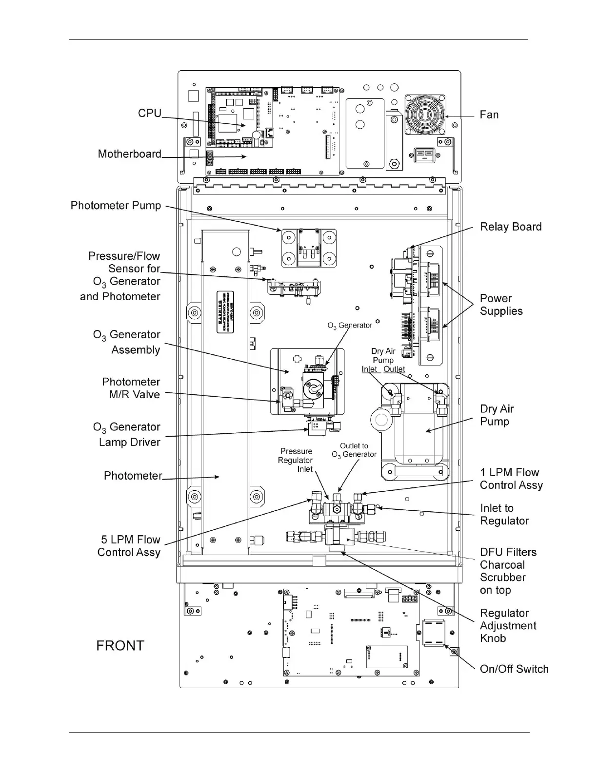 TELEDYNE API T703U - Figure 3-5: T703 Internal Layout - Top View