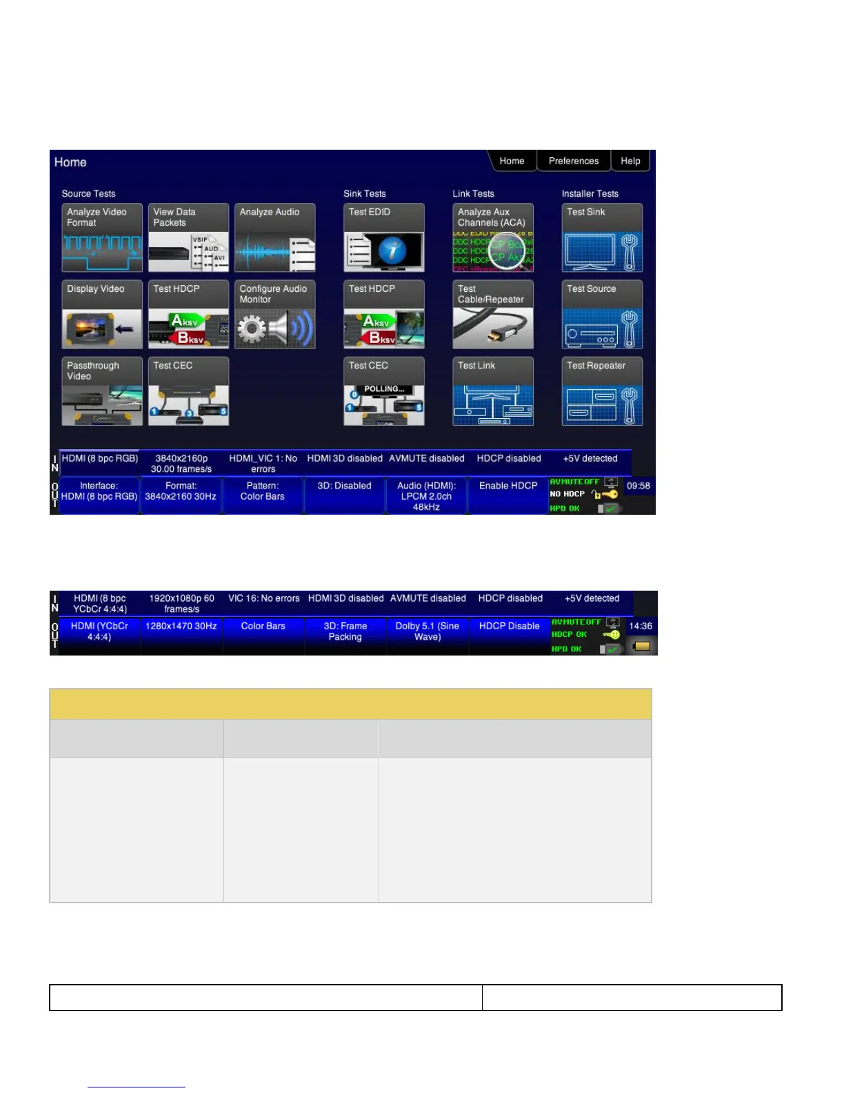 Following apply to HDMI, HDBaseT, DisplayPort