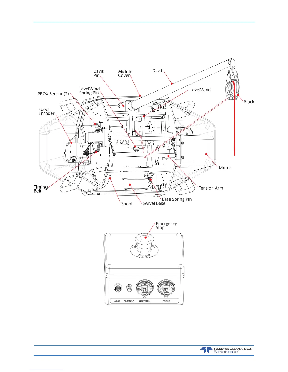 Teledyne Oceanscience rapidCAST - Terminology; Appendix A - Installation Drawings; Figure 1. Winch Assembly Overview; Figure 2. Interface Module Overview