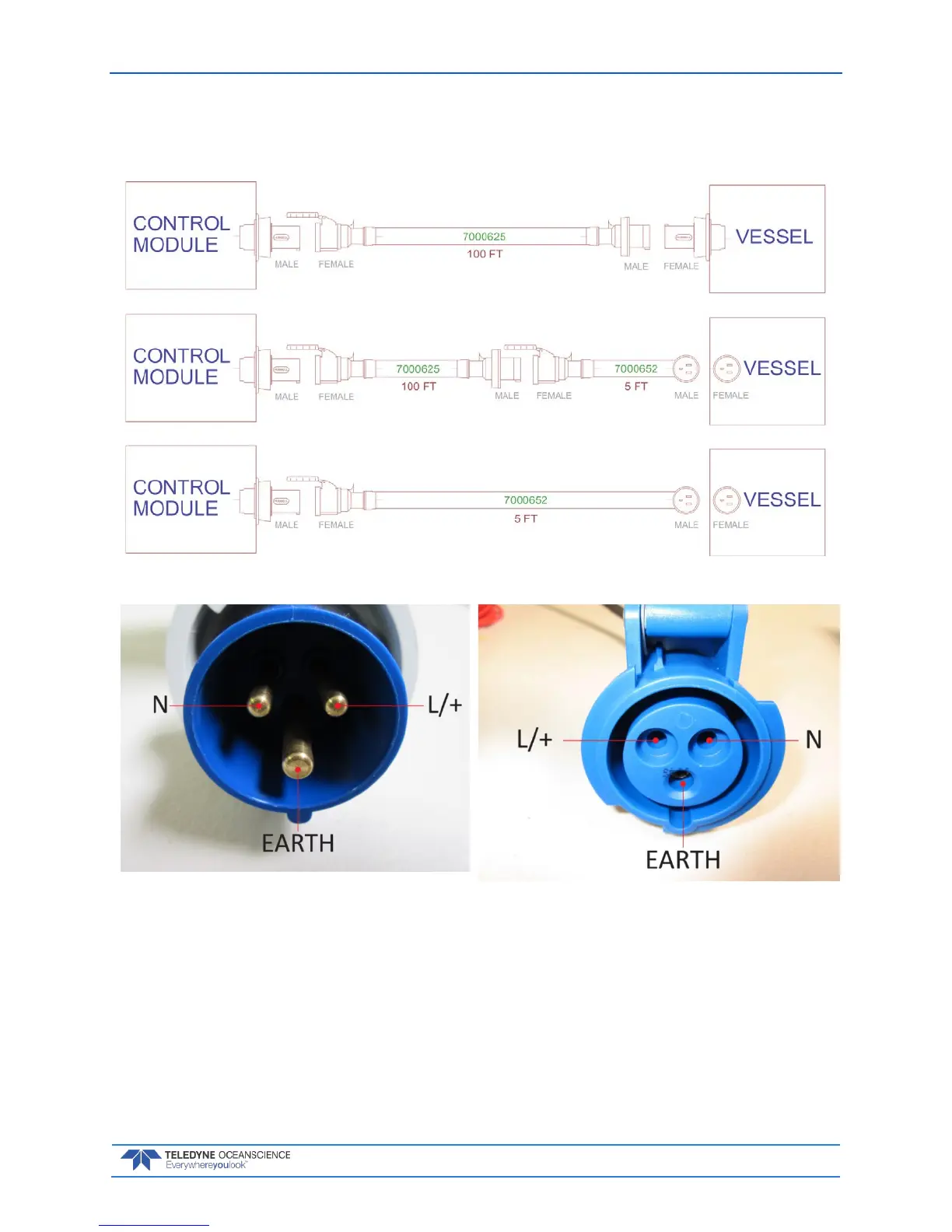Teledyne Oceanscience rapidCAST - Figure 7. Power Cable Connections; Figure 8. 7000625 Cable Plug;Termination; Figure 9. 60309 Vessel Socket; Receptacle; Outlet; Power Cable Connections