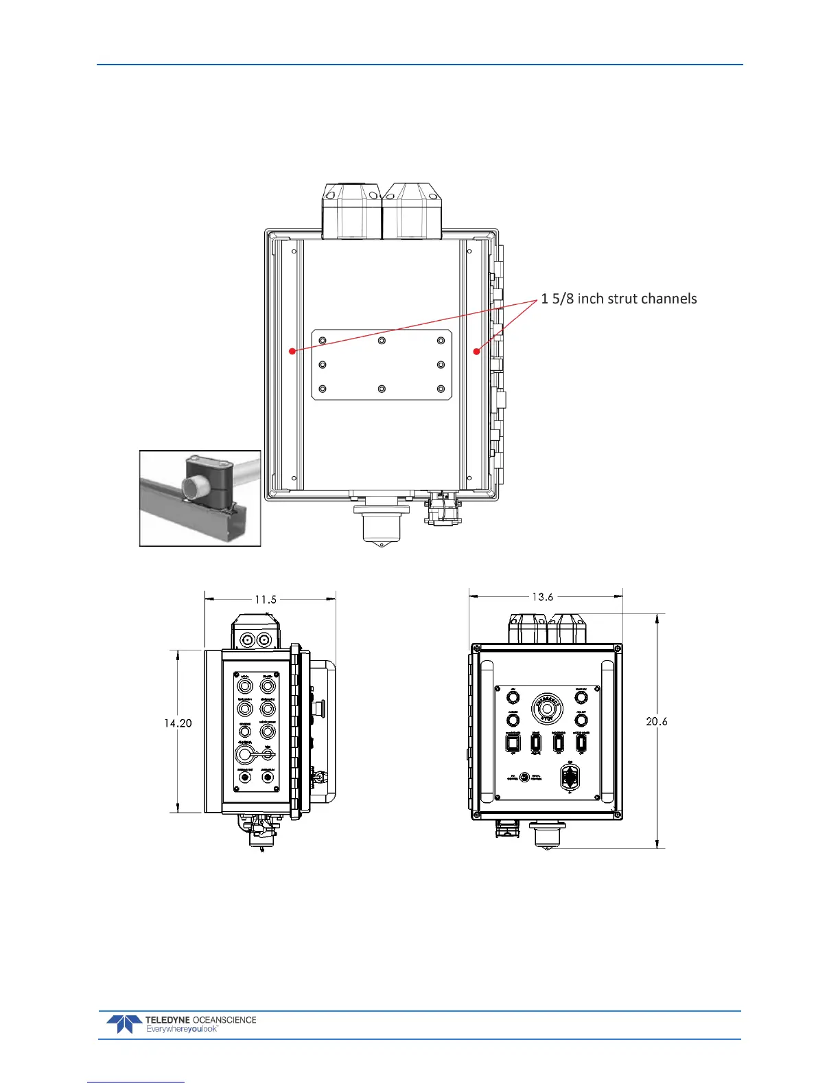 The control module has two standard 1-5/8 inch strut channels located on the back. These will accept