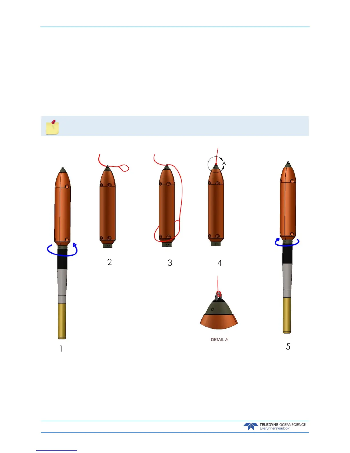 5. Re-install tailspool - rotate tailspool onto probe until white button engages and is springy when