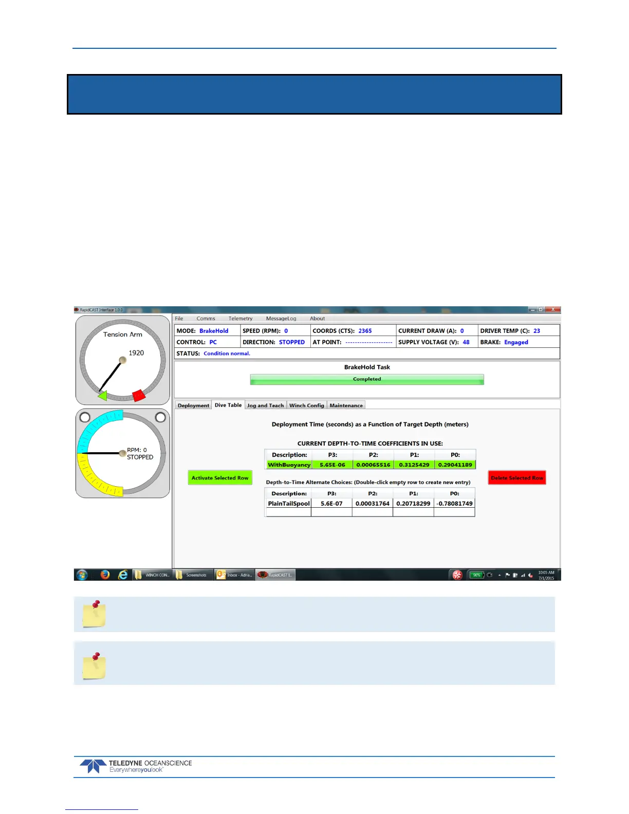 The Dive Table is used to model the probe fall behavior during the deployment. Two tail spool options are