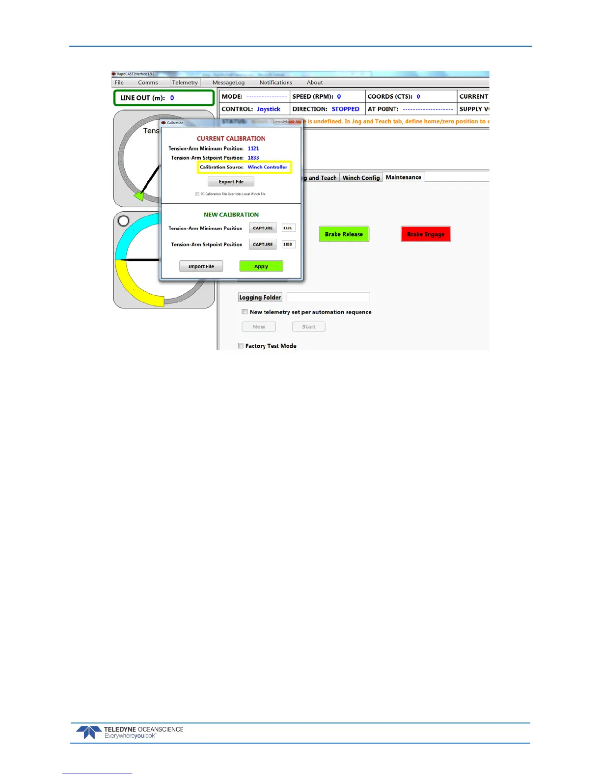 mit the backup calibration data that is stored on the PC, so that the winch can operate normally.